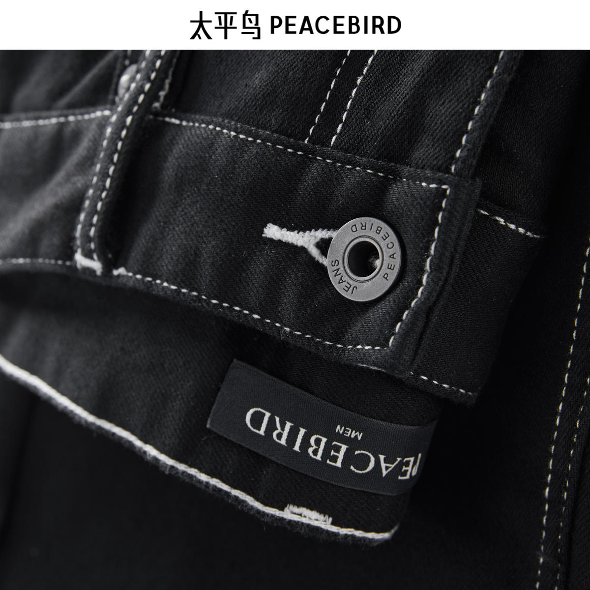 男黑色锥形长裤 太平鸟男装 明线设计牛仔长裤 洋气时尚 潮Y 秋季