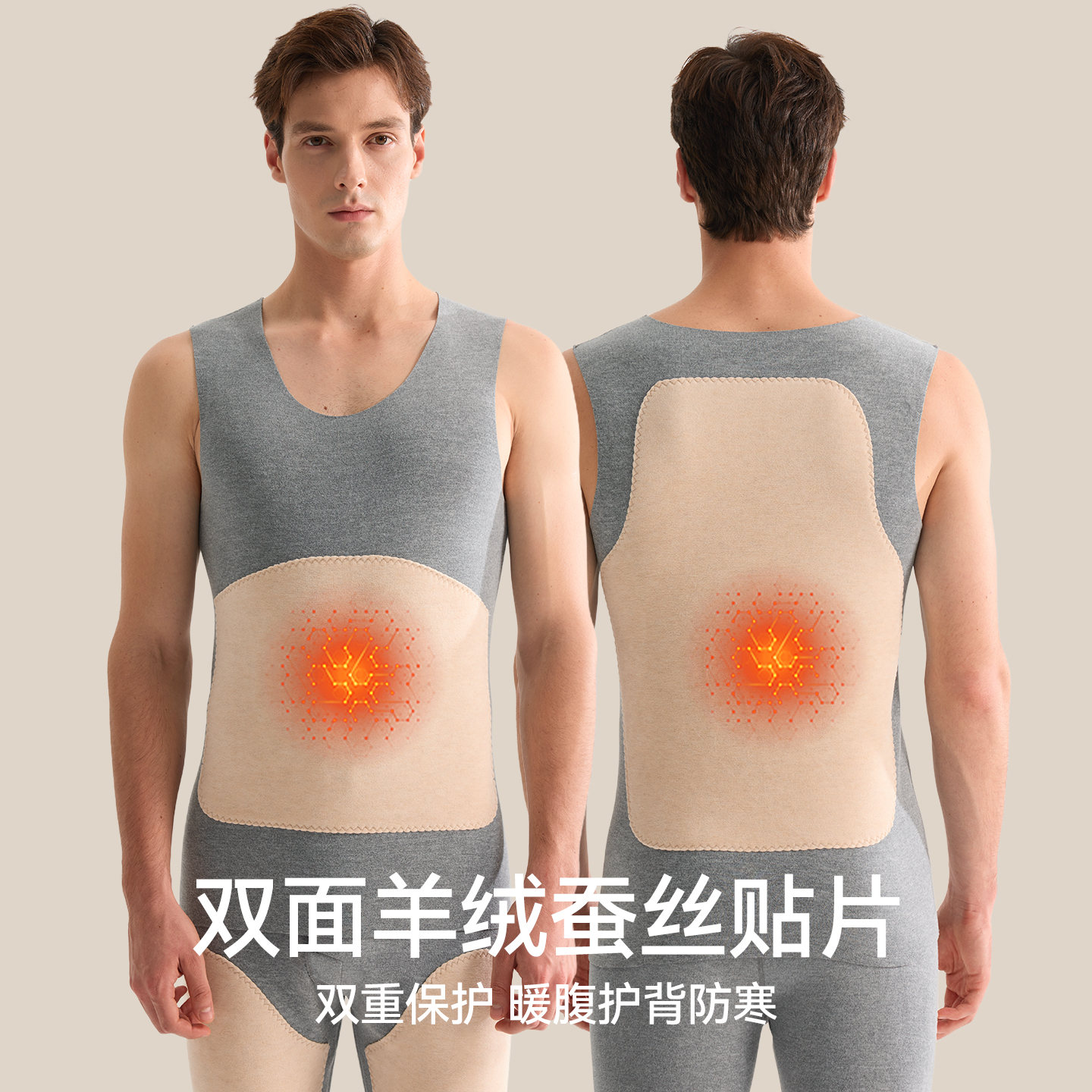 猫人男款 秋冬羊绒蚕丝发热打底 保暖背心秋衣无痕加绒加厚2025新款