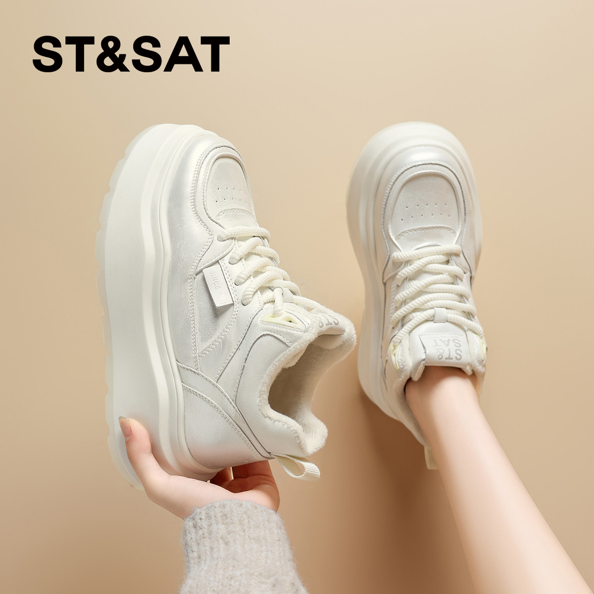 靴子 真皮防水厚底增高工装 森马马丁靴男秋季 高帮百搭休闲白色板鞋