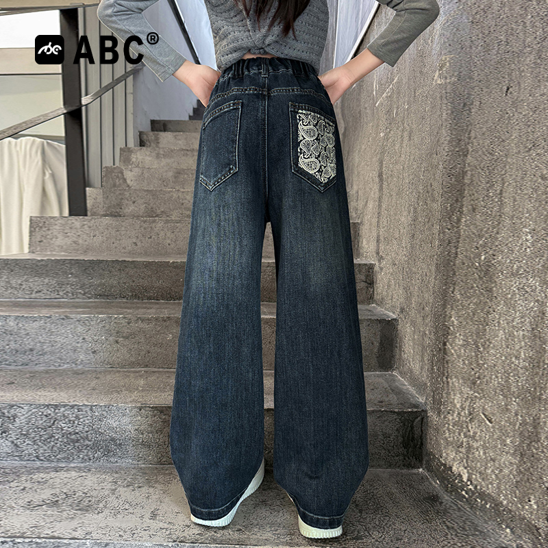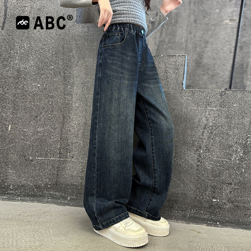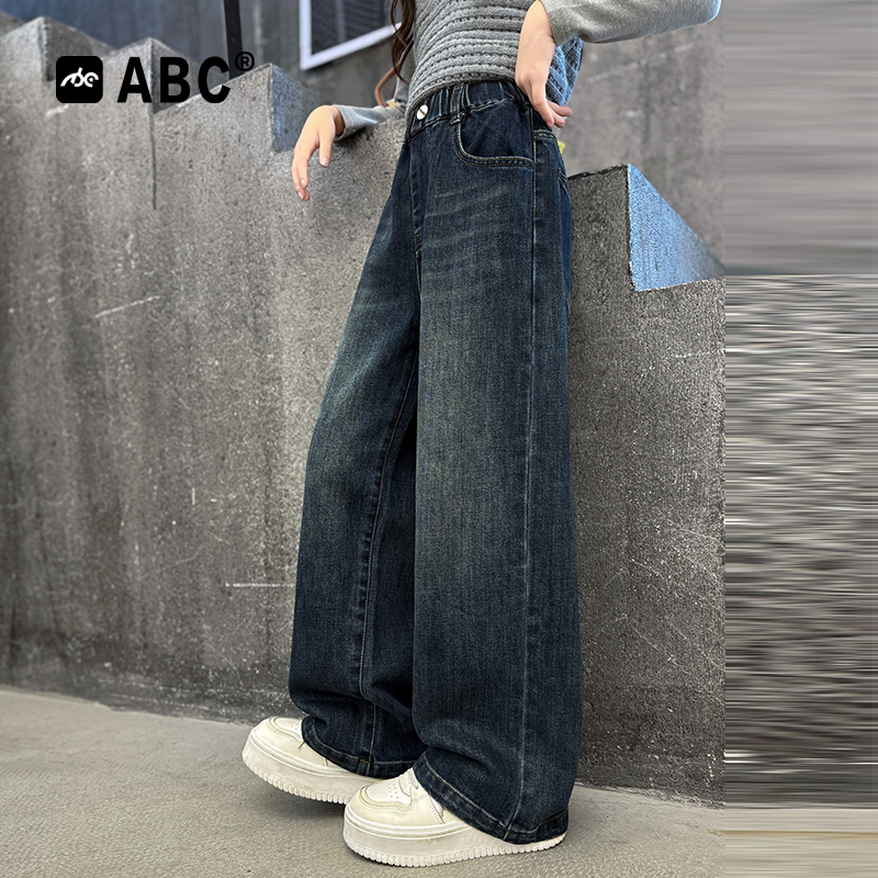 裤 ABC女童韩版 女孩韩版 2025女大童春秋时髦阔腿裤 子潮 阔腿牛仔裤