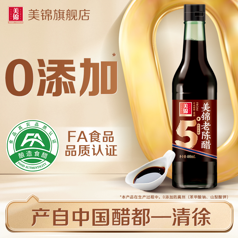美锦老陈醋5度400ml家用食醋玻璃瓶原产地山西清徐蘸饺子凉拌调味