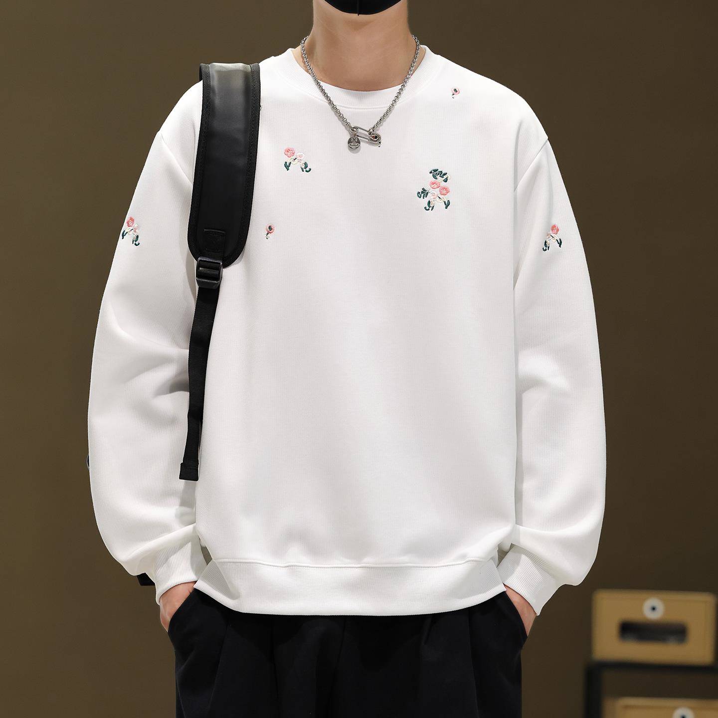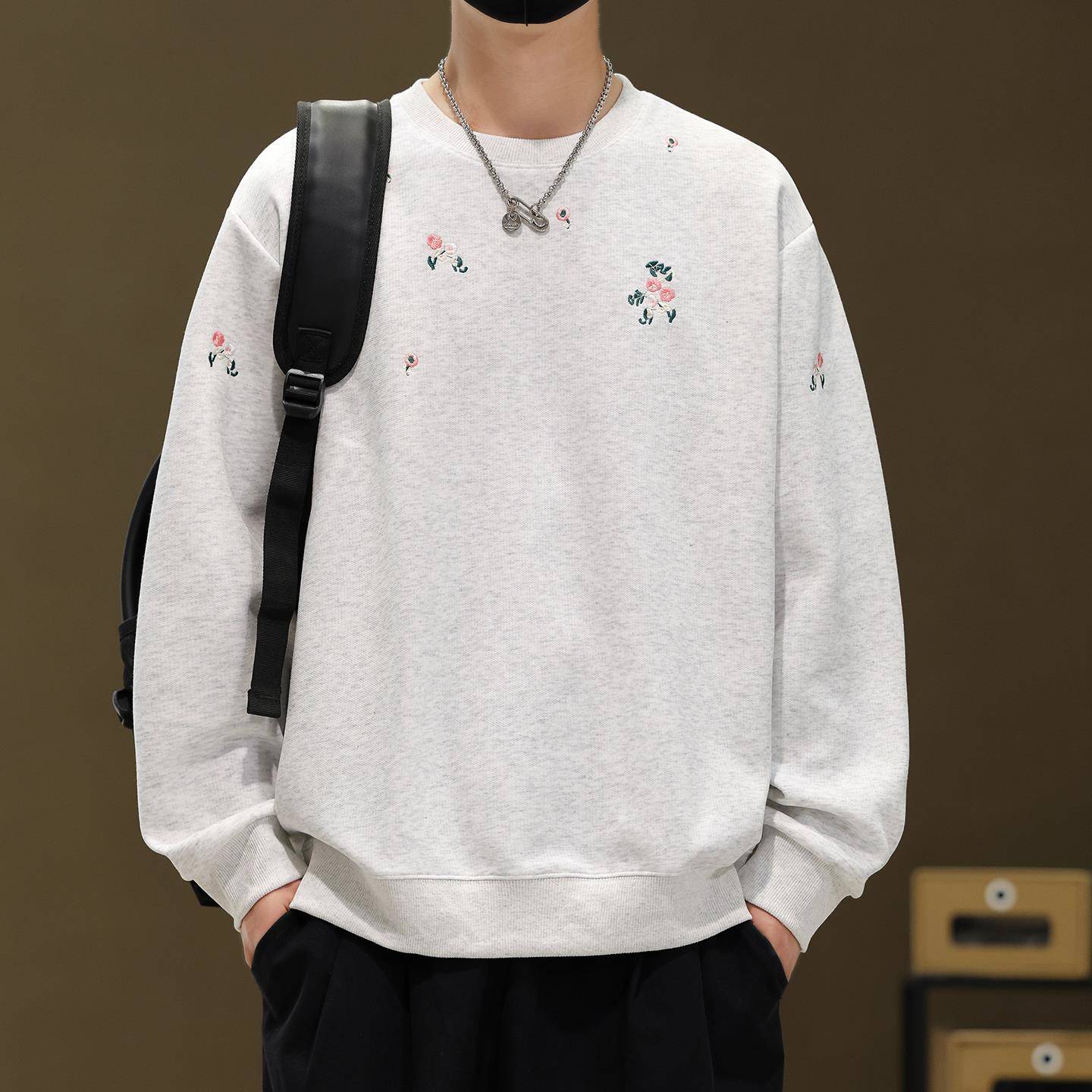 长袖 男士 t恤1015e 刺绣潮牌宽松打底衫 粉色卫衣男秋冬新款
