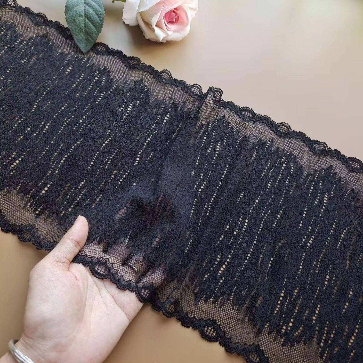 弹力蕾丝花边辅料衣服裙子短了加长下摆接边布料黑色裙边服装 辅料