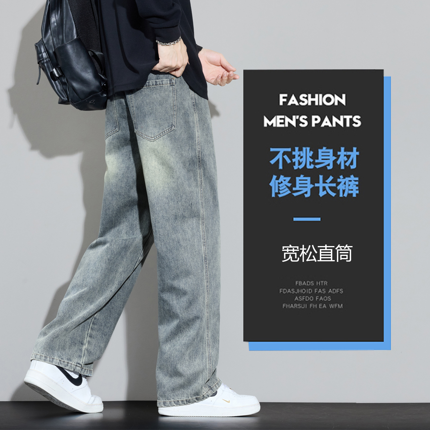 宽松直筒男裤 春秋季 2025年新款 休闲百搭阔腿长裤 牛仔裤 子男款 男士
