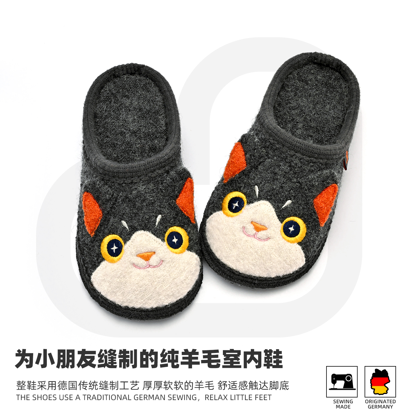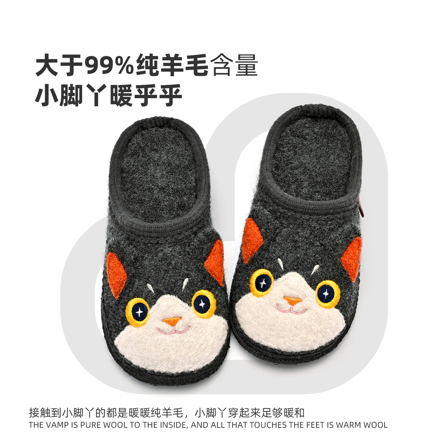 小猫咪卡通地板静音防滑 家居宝宝棉鞋 小茸儿童室内拖鞋 男孩童冬季