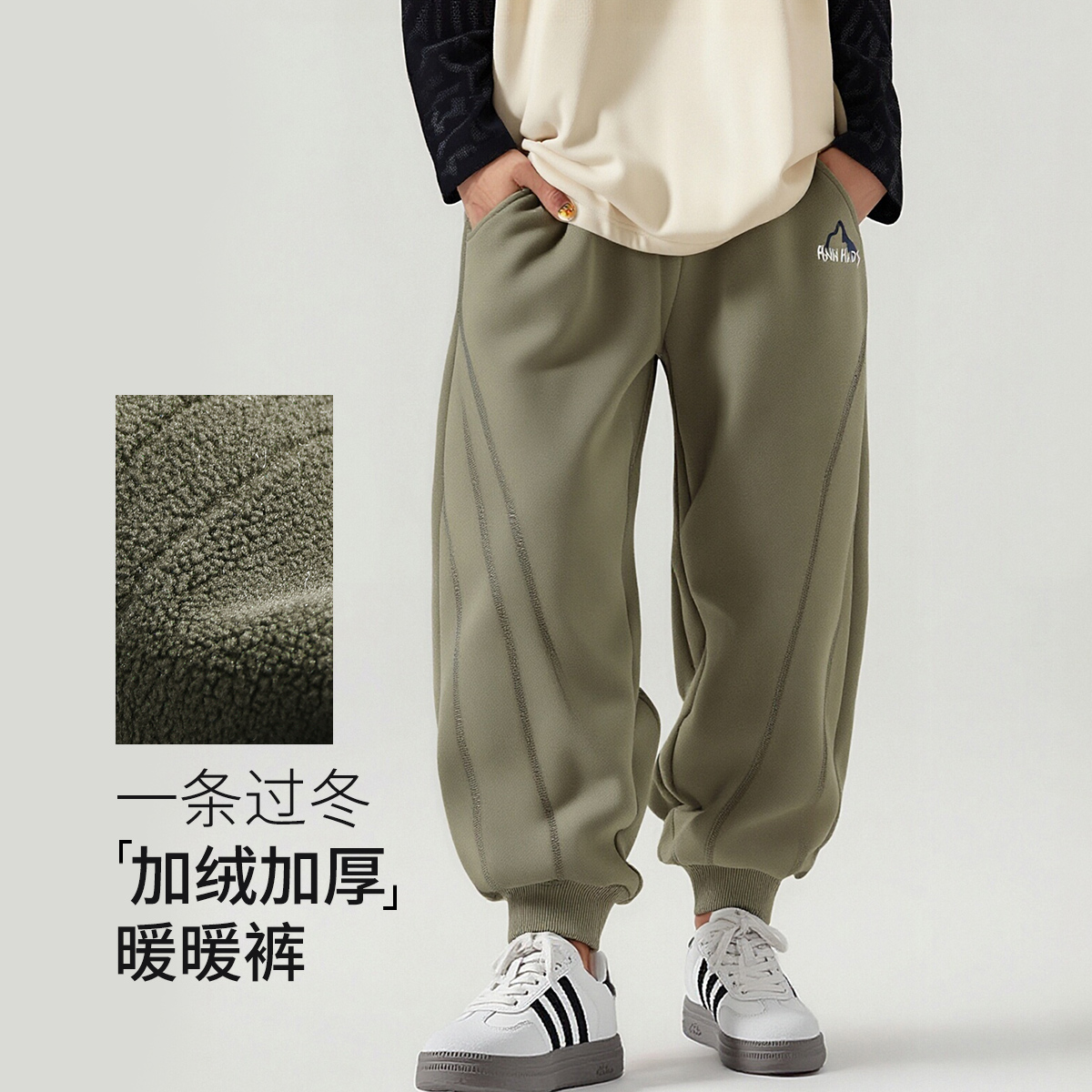 男士 子男生宽松潮牌美式 春秋款 加绒束脚长裤 卫裤 R.Q.G运动休闲裤