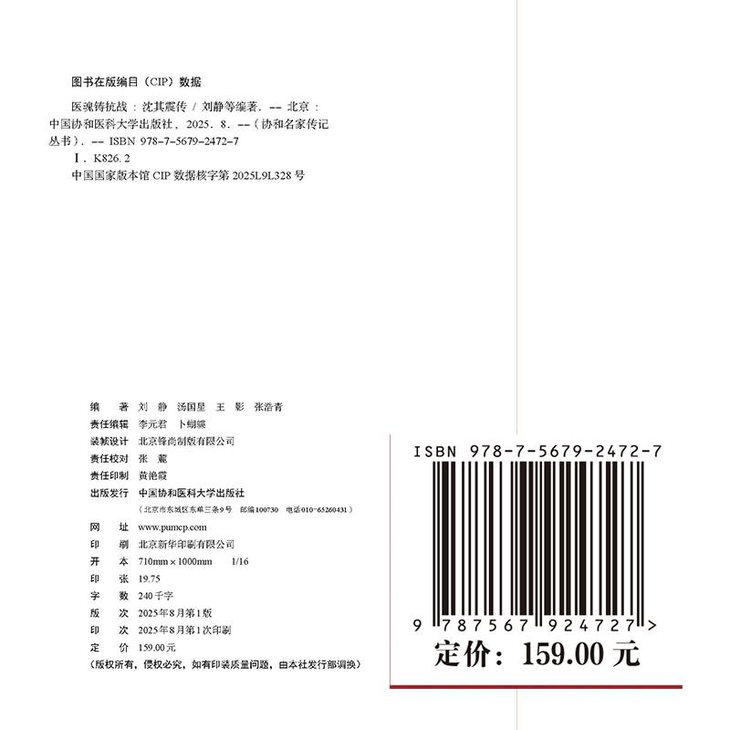 王影 汤国星 张浩青 中国协和医科大学出版 9787567924727 医魂铸抗战沈其震传 社 刘静