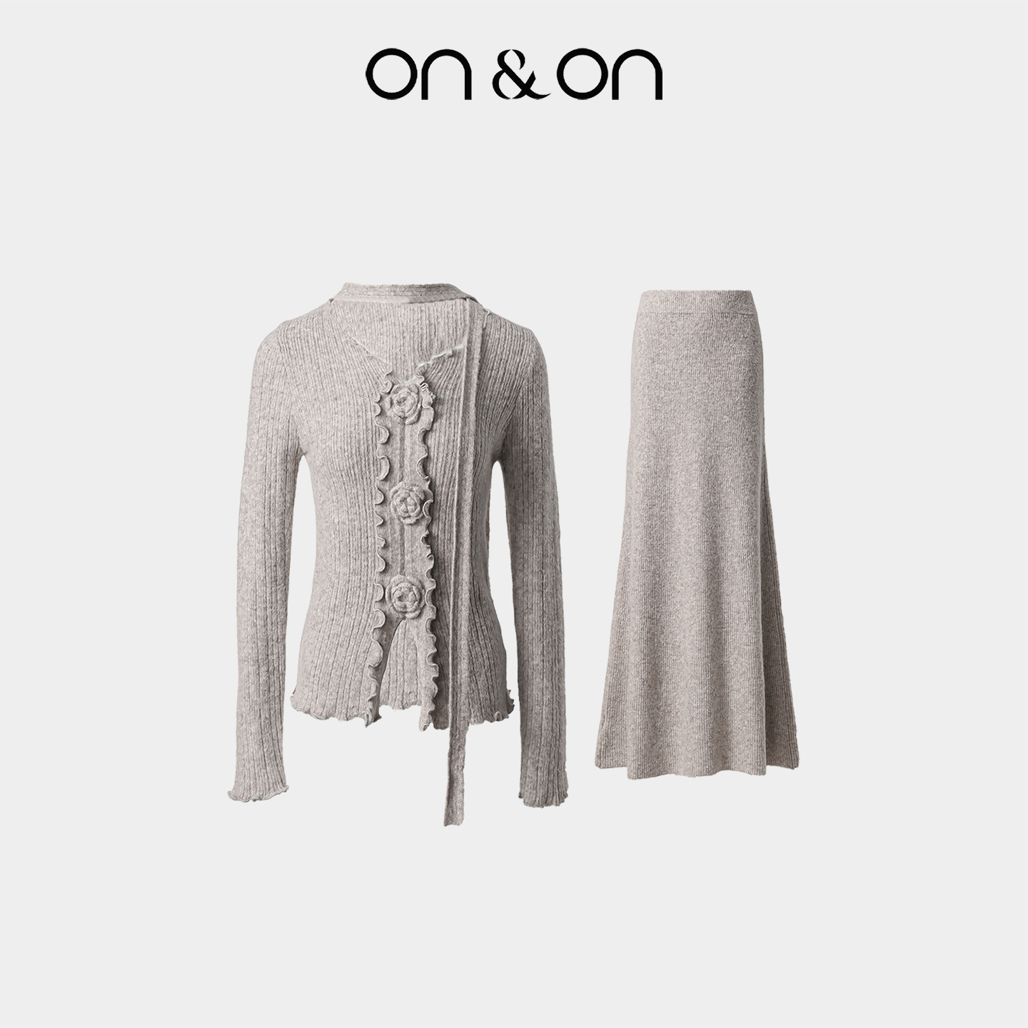 韩系立体山茶花系带气质显瘦针织套装 新款 安乃安2025秋季 ON&ON