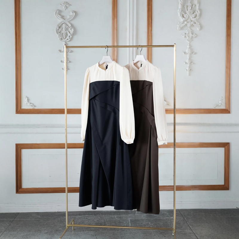Her to拼接垂坠连衣裙褶皱收腰撞色气质日系大女主 lip