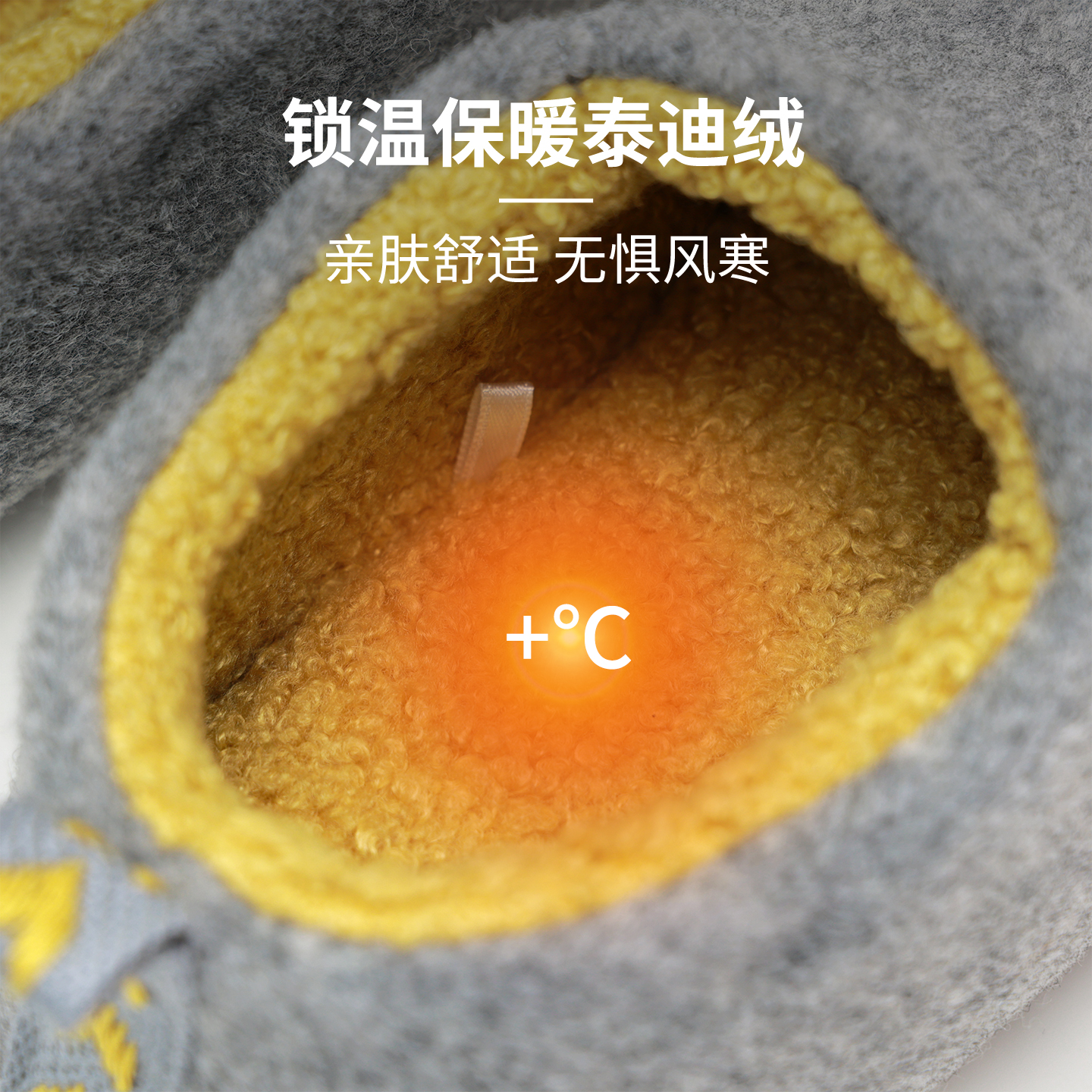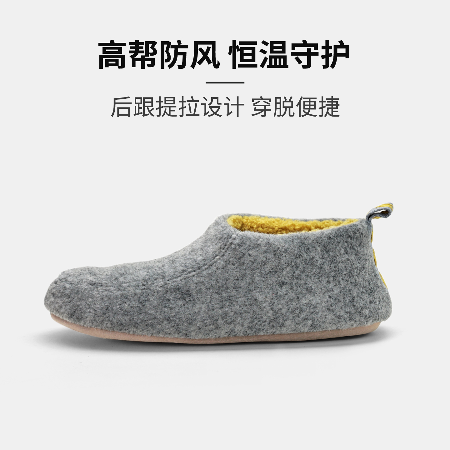 居家防滑高帮加绒保暖包跟棉拖鞋 果洛菲日系中老人棉鞋 男女秋冬季