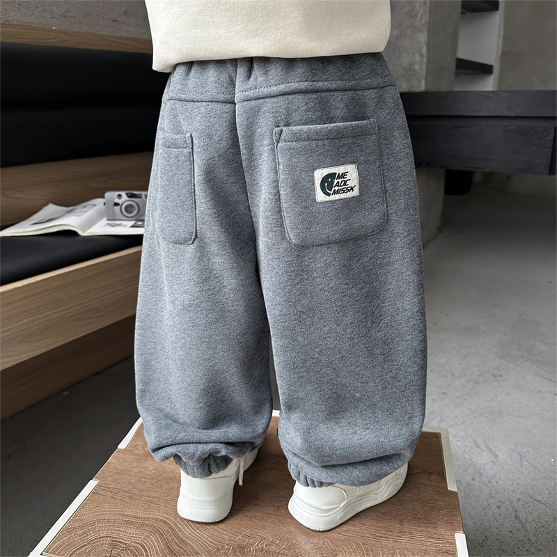 加绒街舞穿搭褶皱宽松休闲长裤 女秋冬季 子 灰色运动卫裤 自然涩美式