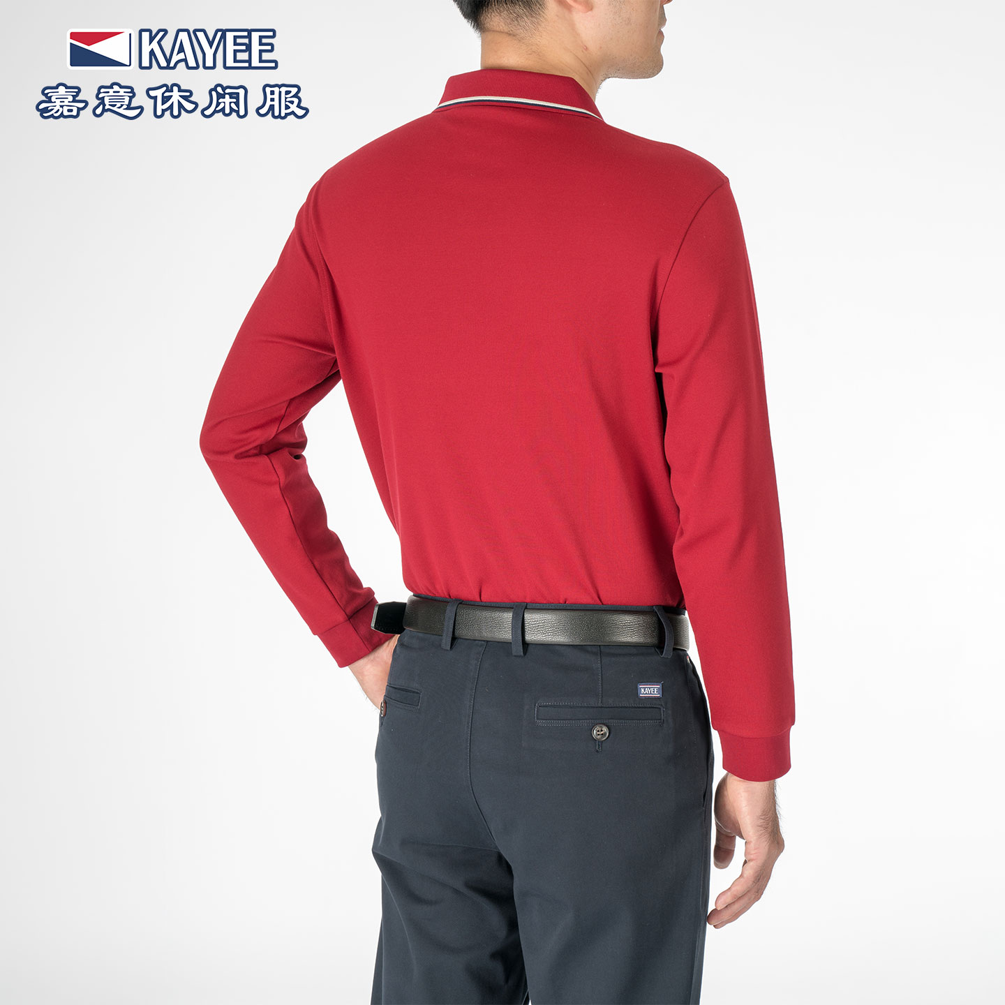 polo衫 嘉意秋冬季 男t恤红色宽松翻领男士 商务休闲长袖 C64007 新款
