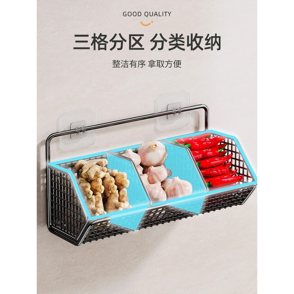 厨房葱姜蒜收纳盒生姜大蒜壁挂免打孔多功能置物架收纳其他收纳篮