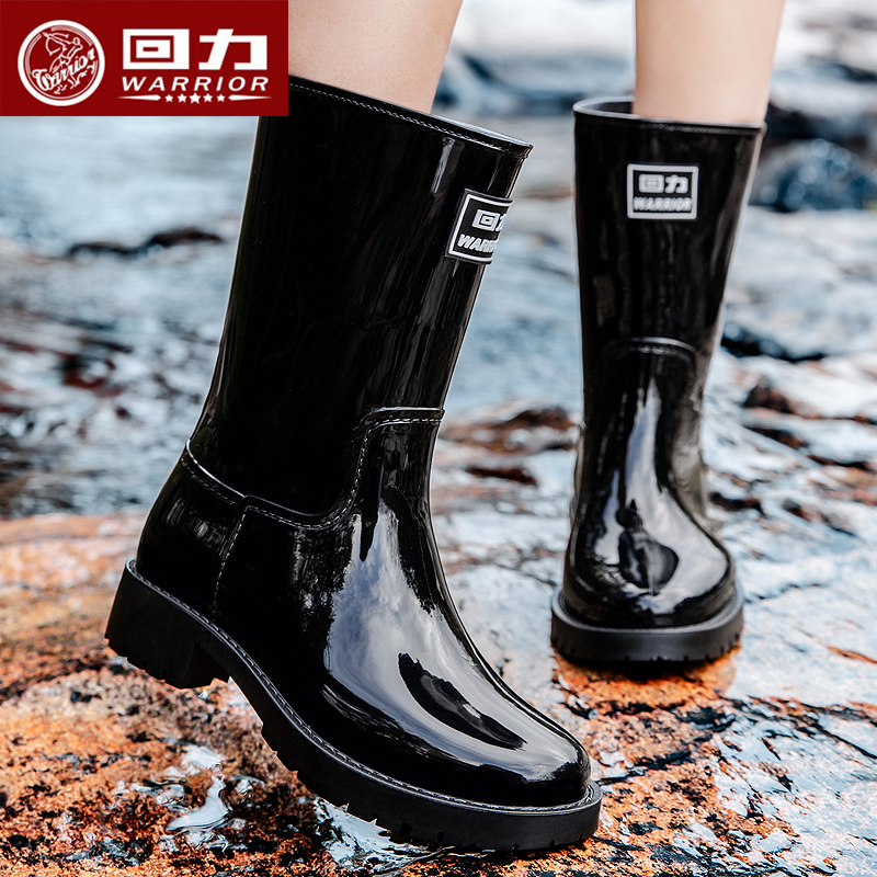 套鞋 外穿中筒雨靴防水防滑厚底耐磨厨房工作胶鞋 女士新款 回力雨鞋