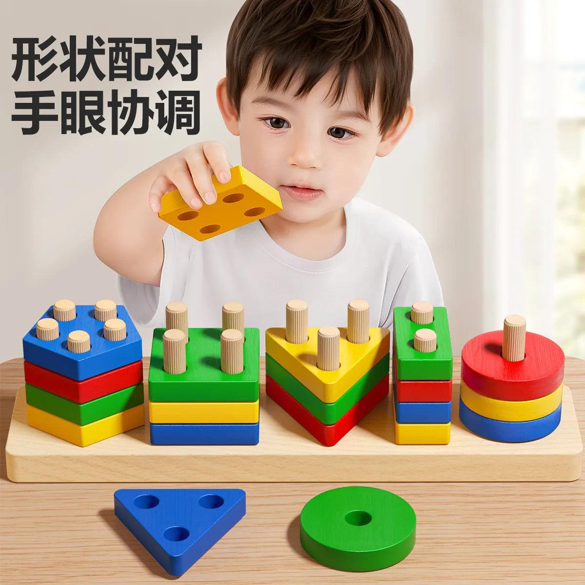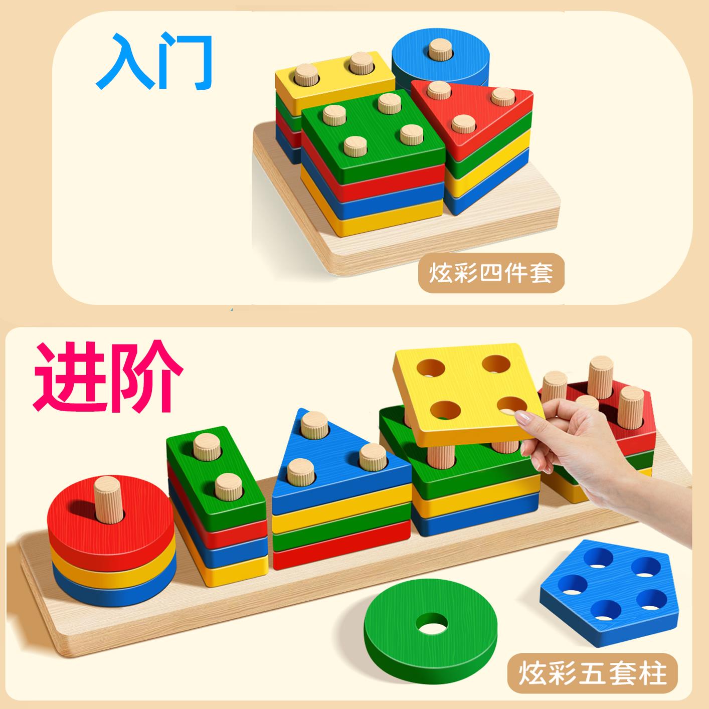 婴儿童蒙氏早教几何套柱形状配对拼装 积木玩具益智1岁男女孩宝宝