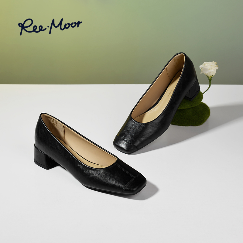 单鞋 羊皮浅口法式 千百度粗高跟鞋 异形跟职业通勤大码 静音系列