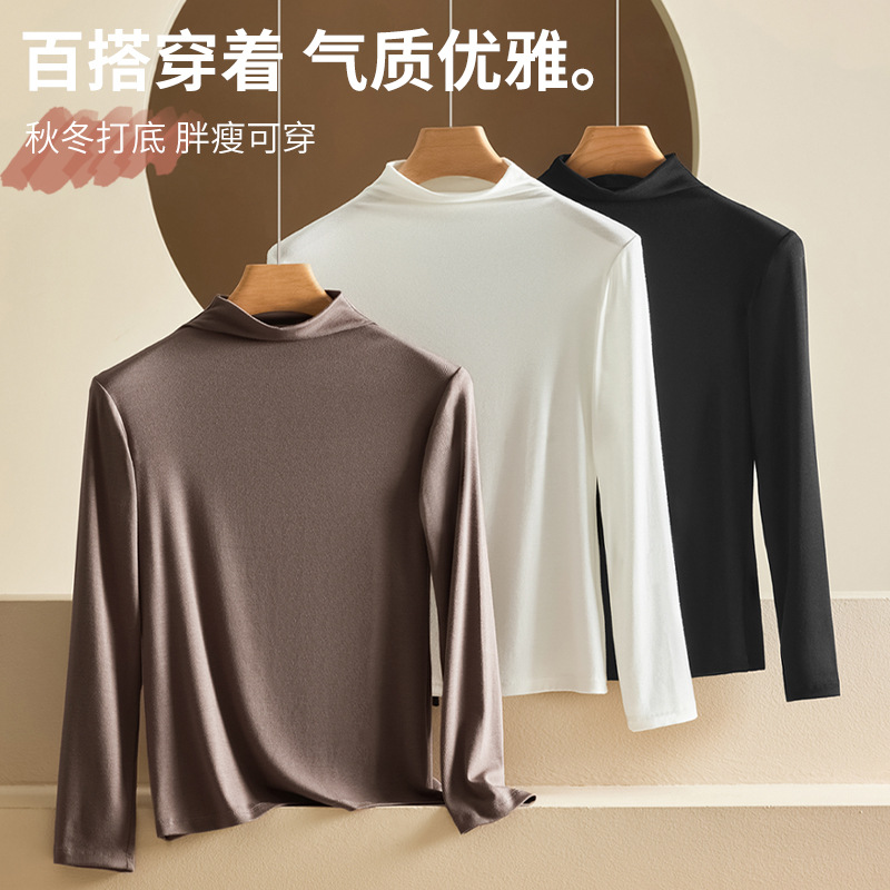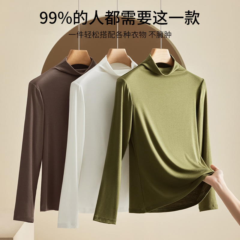 女秋冬半高领气质莫代尔打底衫 时尚 女式 长袖 内搭纯色 修身 新款