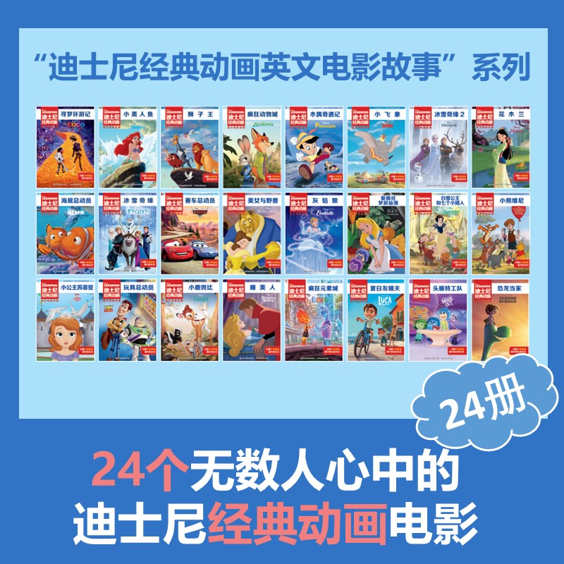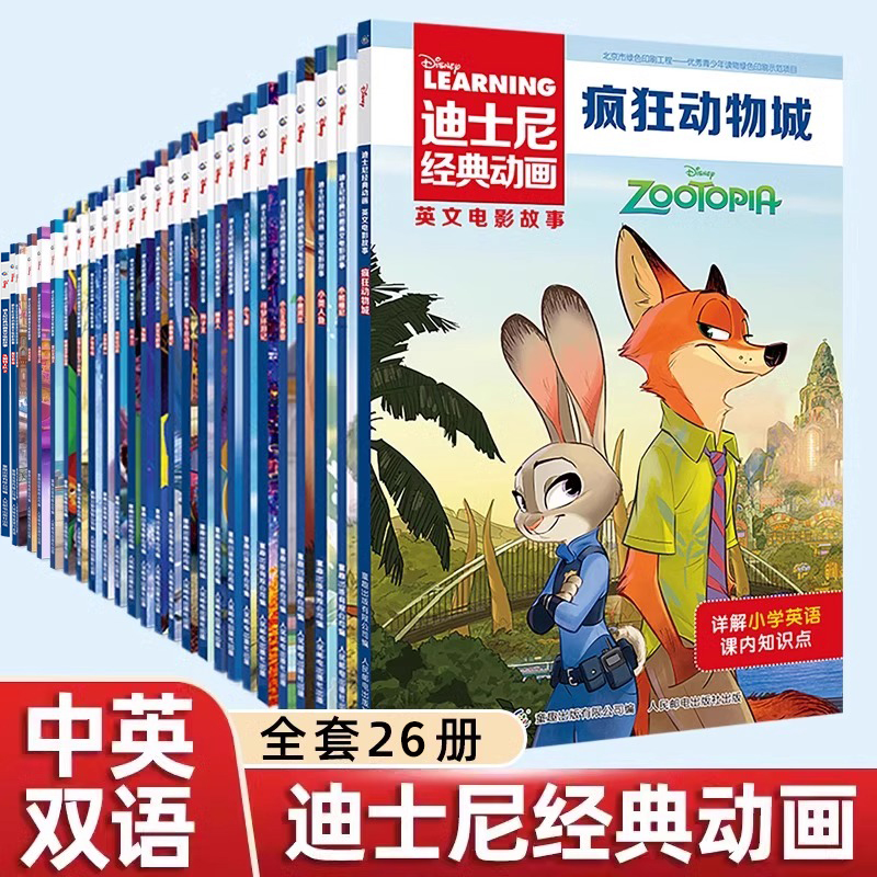 26册迪士尼经典 动画英文电影故事书疯狂动物城儿童启蒙英语分级阅读绘本三四五六年级小学生课外寻梦环游记赛车总动员狮子王花木兰
