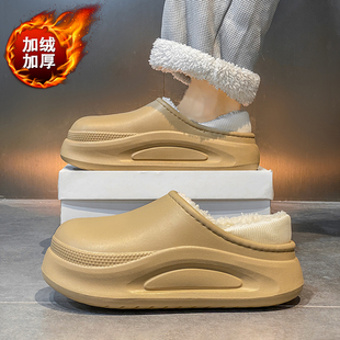 情侣外穿保暖东北棉鞋 棉拖鞋 居家厚底踩屎感包跟毛毛拖鞋 冬季 男款