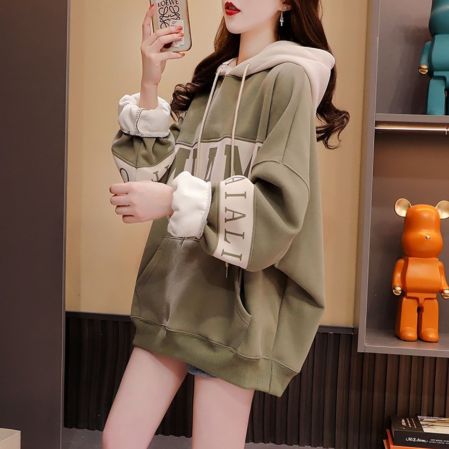 时尚 慵懒风韩版 胖mm爆款 大码 洋气高级感上衣 撞色连帽卫衣女春秋款