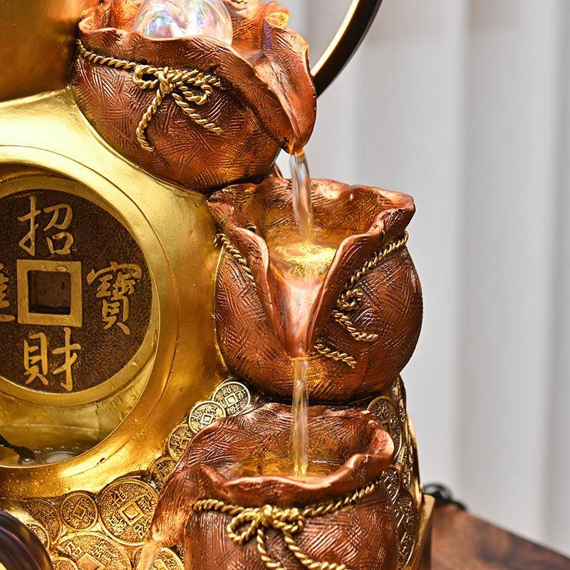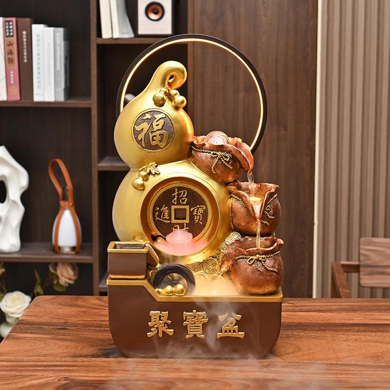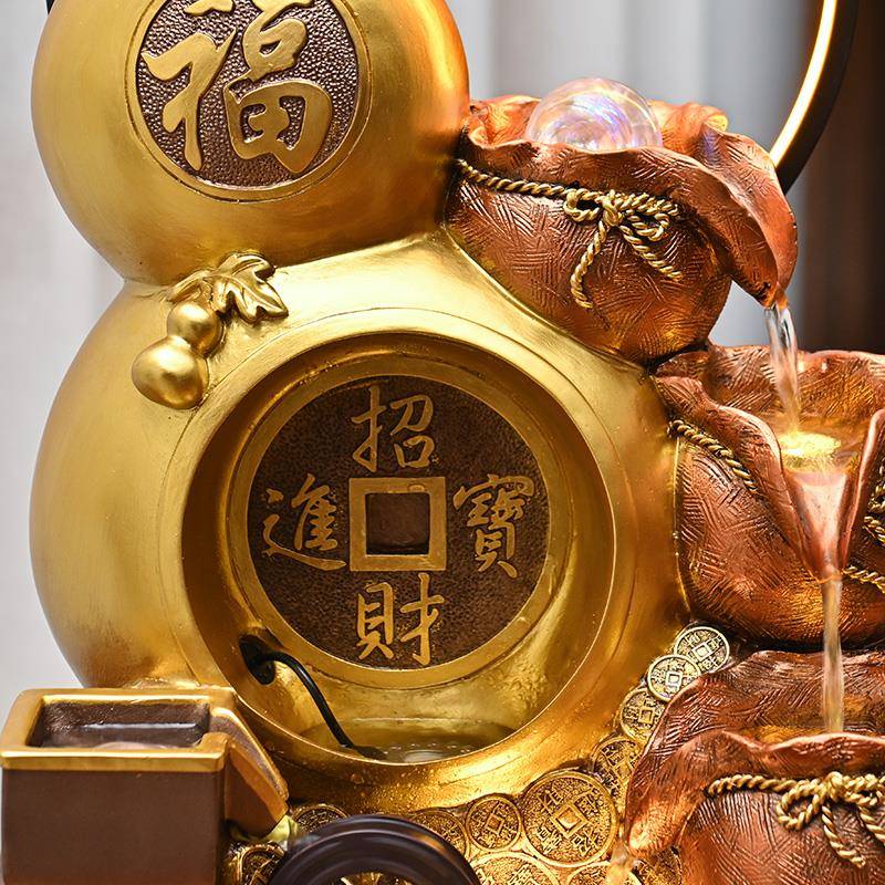 招财福禄流水摆件循环水聚宝盆客厅玄关办公室风水轮乔迁开 业礼