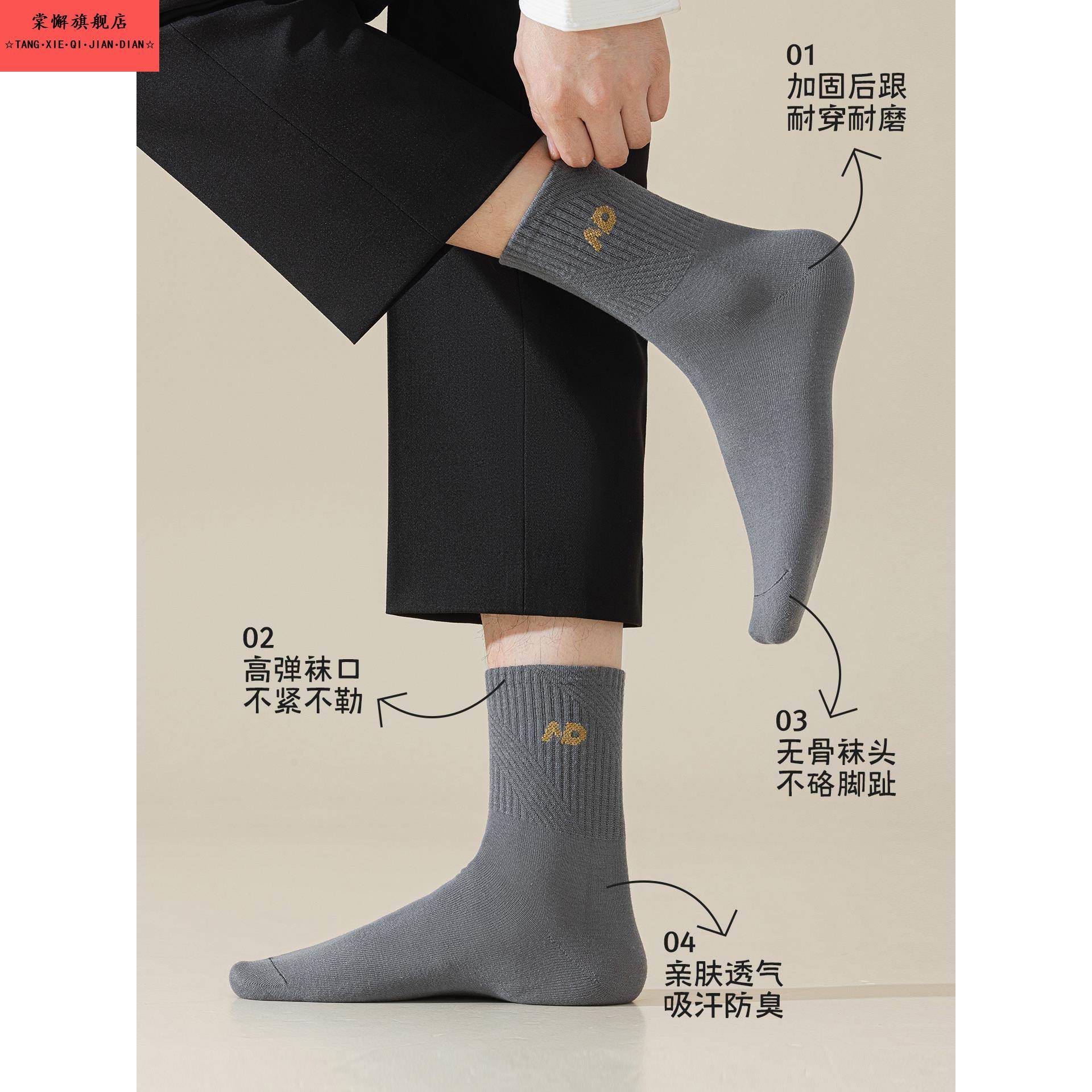 中筒袜秋冬透气纯棉吸汗防臭黑色长袜 有棵树袜子男士 纯棉抗菌