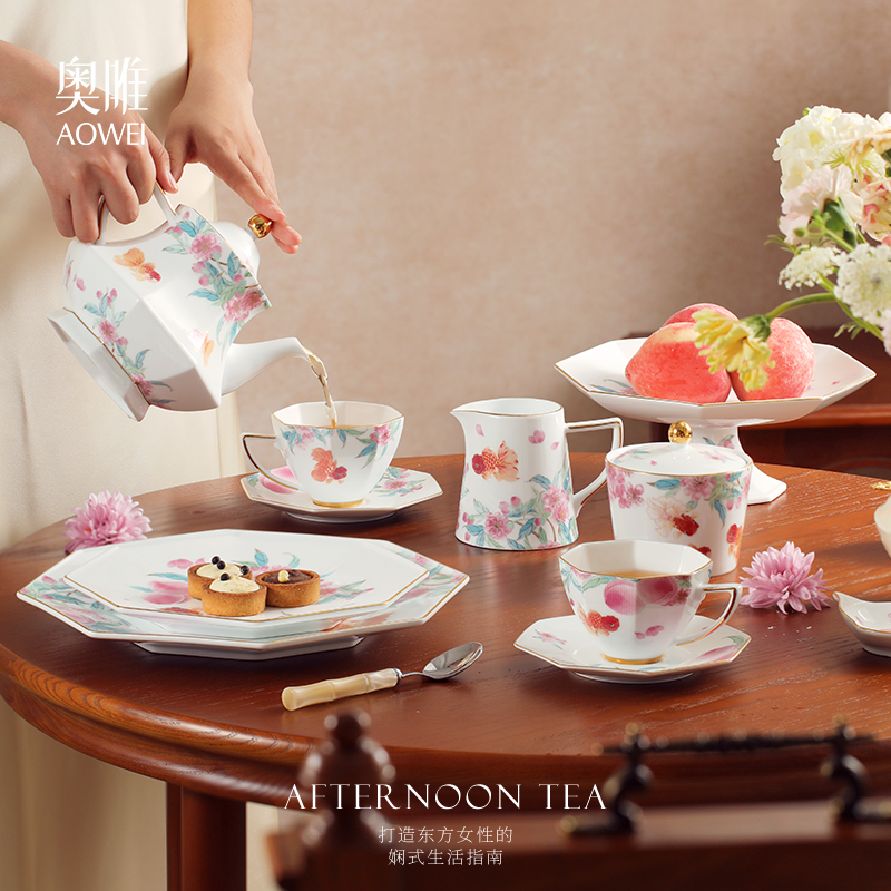 奥唯 景德镇高温白瓷茶具高颜值精致下午茶咖啡具家用客厅泡茶壶