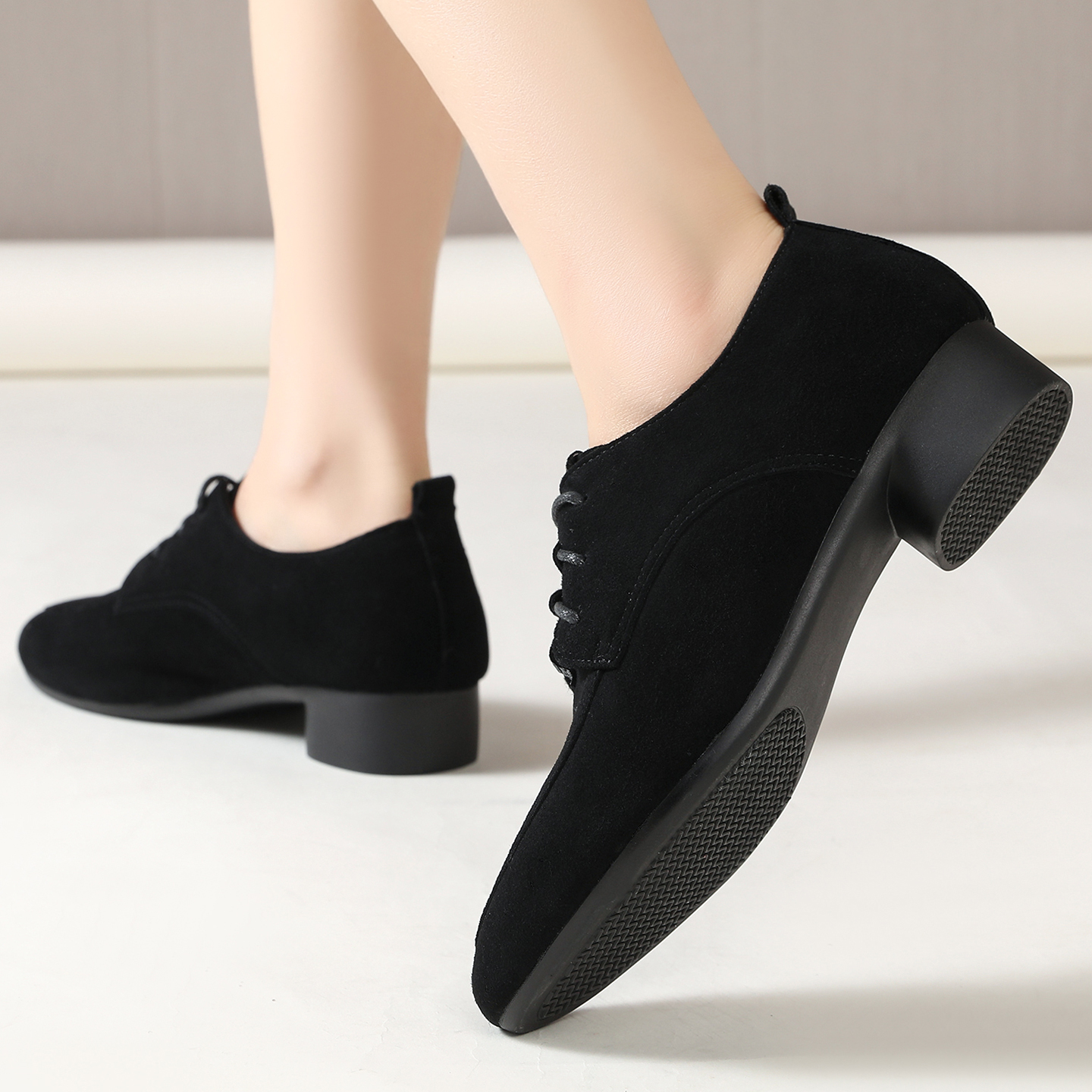中跟羊皮女鞋 新款 深口鞋 加绒棉鞋 真皮单鞋 黑色妈妈皮鞋 女2025秋季