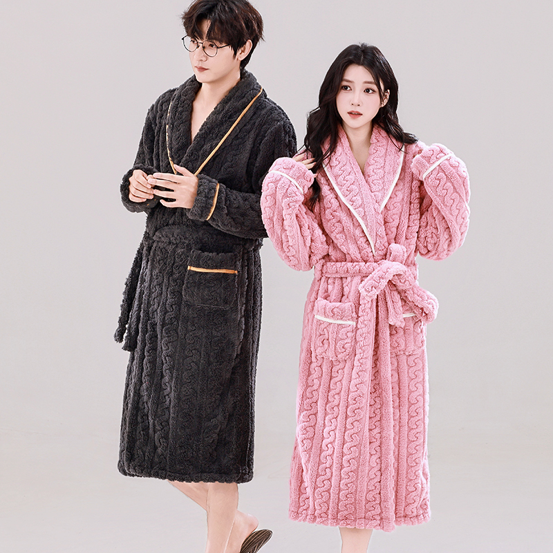 珊瑚绒情侣浴袍冬保暖洗澡浴巾大码 新款 加厚法兰绒睡袍男女加长款