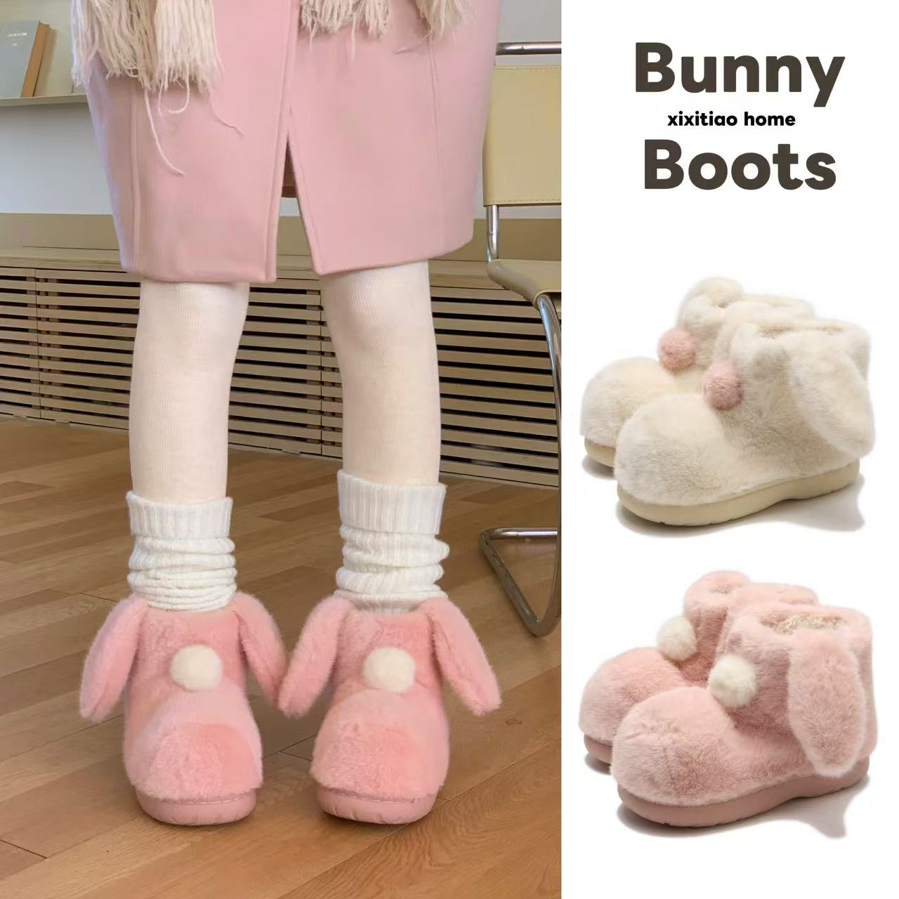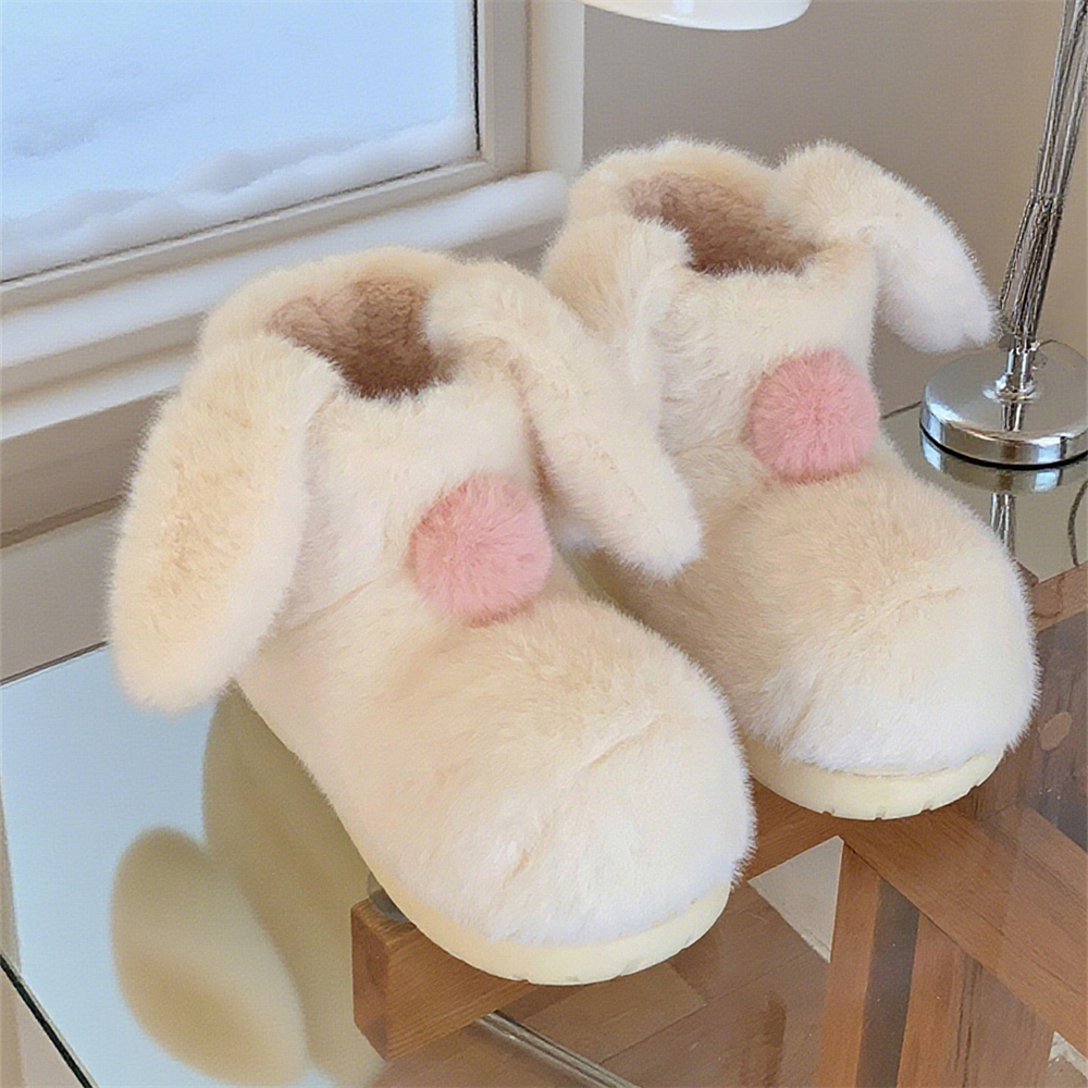 软萌小兔耳朵毛毛靴子女保暖加绒冬季 棉靴防滑百搭户外可爱雪地靴