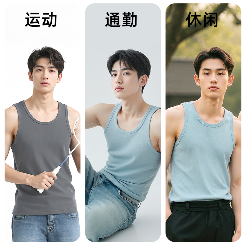 汗衫 七匹狼2025新款 健身上衣秋季 衫 全棉 运动背心纯色上衣螺纹无袖