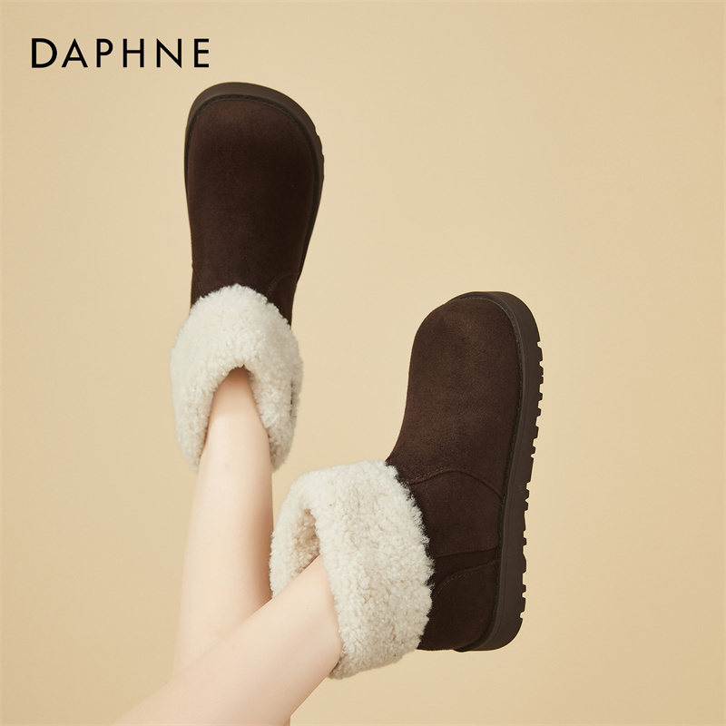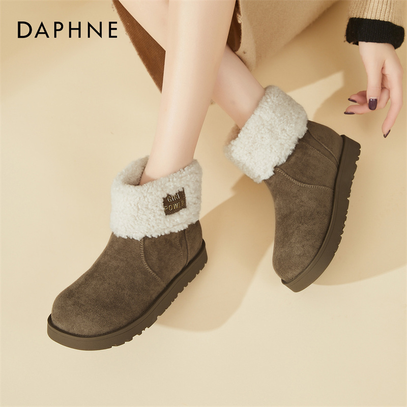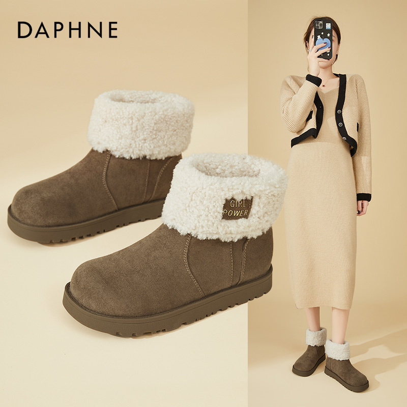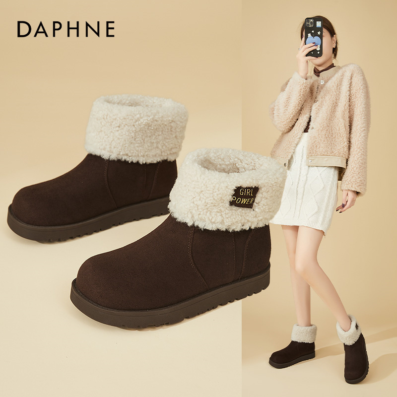 休闲棉靴翻折 雪地靴加绒棉鞋 达芙妮2025年冬季 低跟保暖短筒时尚