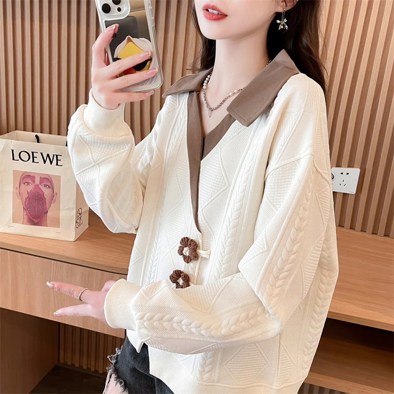 加绒加厚撞色上衣外套 宽松大码 小个子polo领卫衣女秋冬季 2025新款