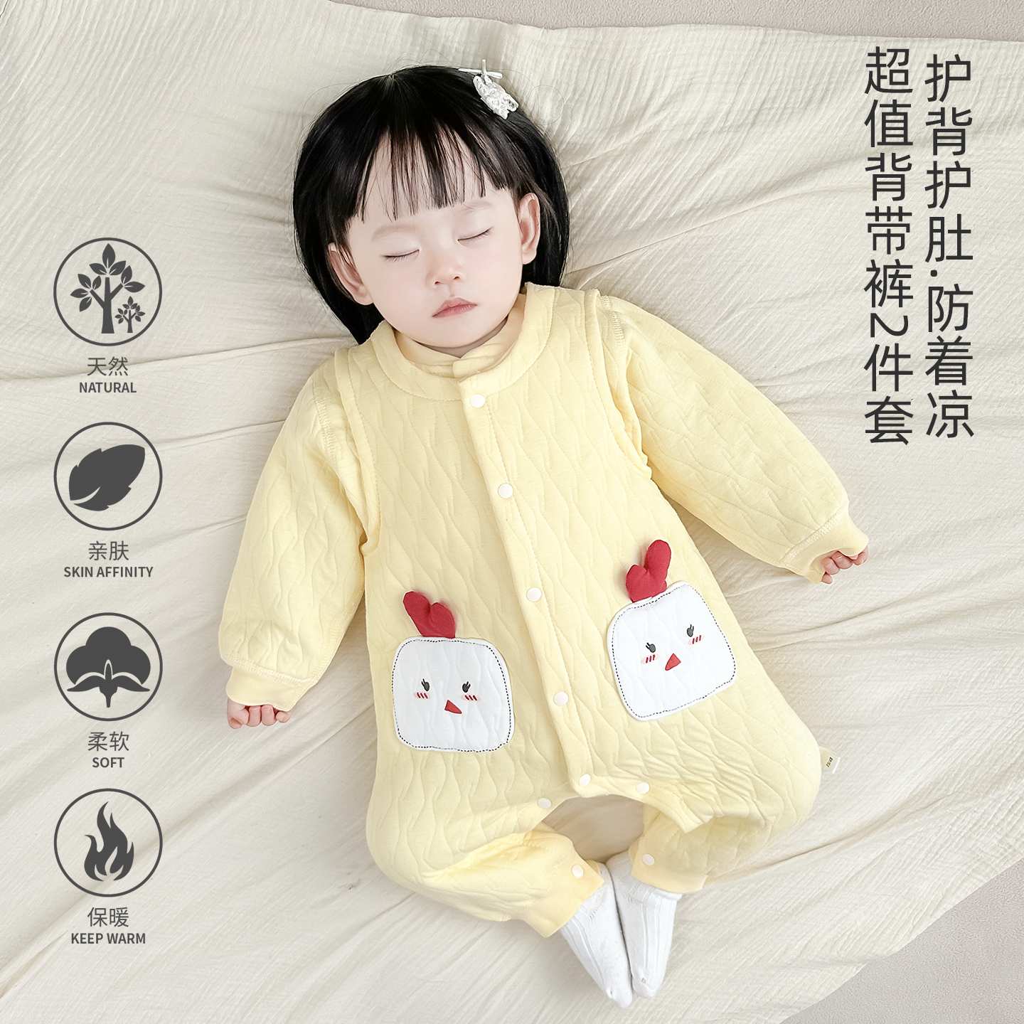 宝宝连体衣两件套 背带裤 婴儿保暖内衣套装 纯棉分体夹棉加厚秋冬装