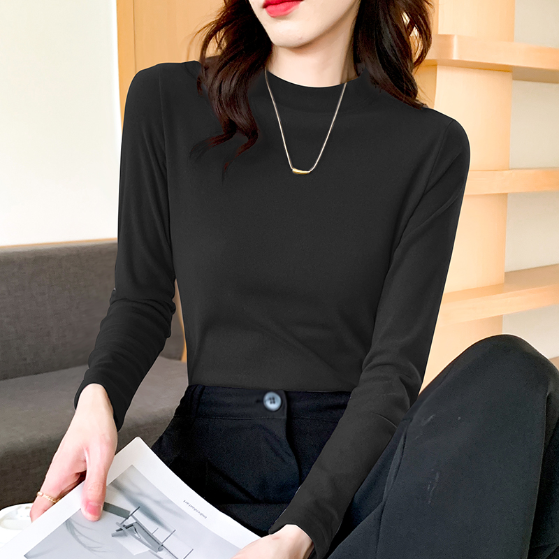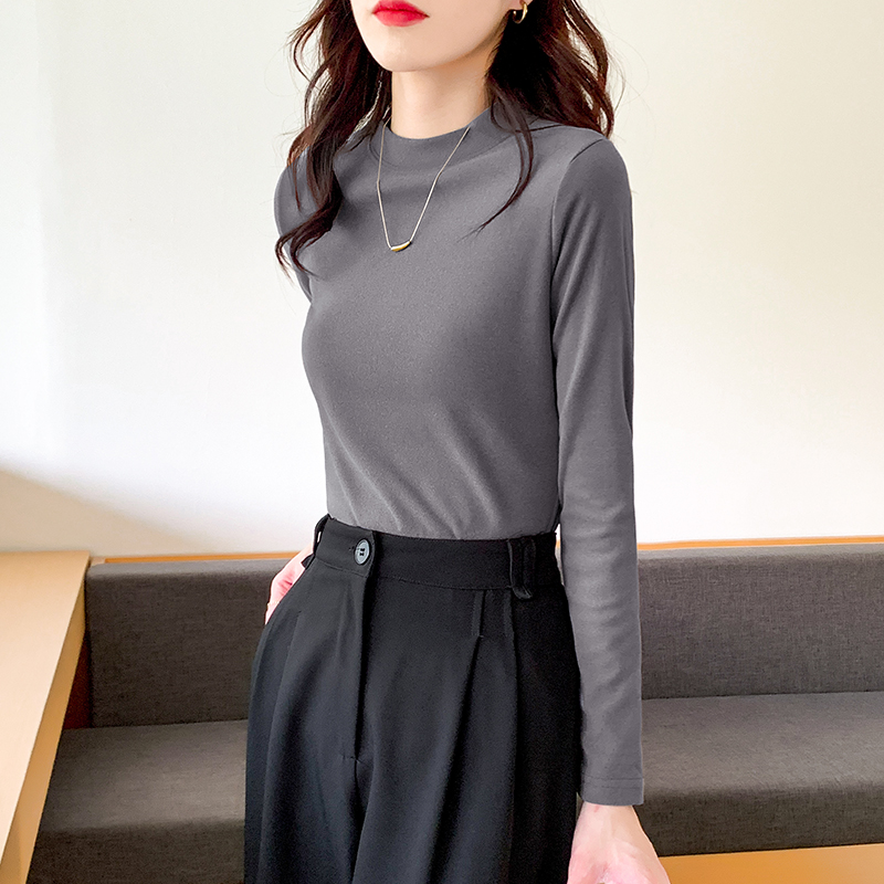 上衣 紧身洋气保暖长袖 烟灰色半高领加厚打底衫 女内搭2025秋冬新款