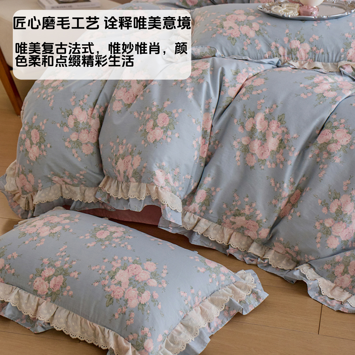 高端法式 田园花卉全棉四件套公主风纯棉花边蕾丝被套仙女床单床笠