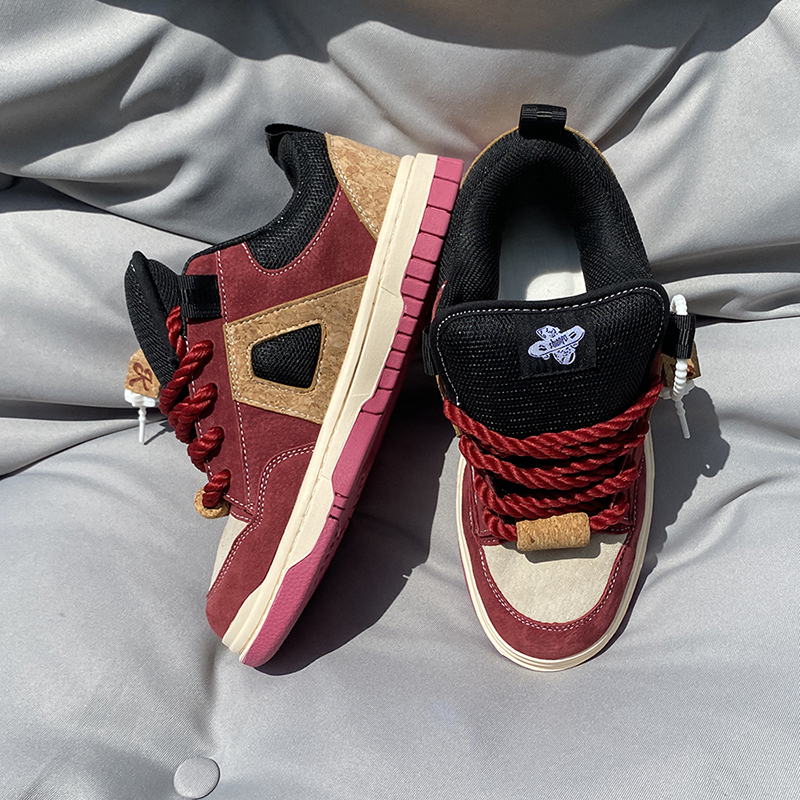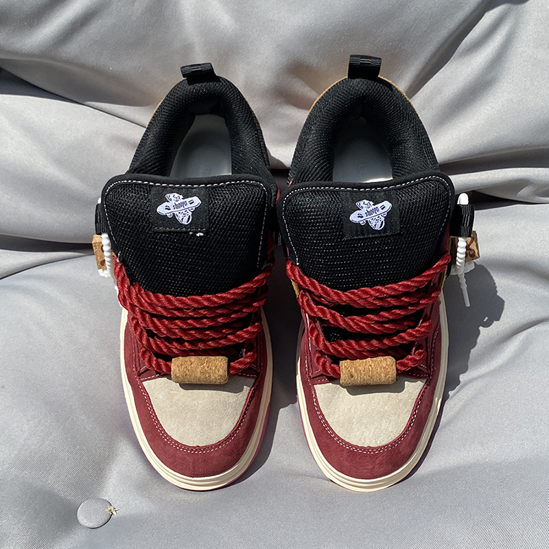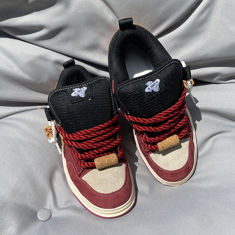 休闲板鞋 酒红色低帮厚底面包鞋 男鞋 潮鞋 子 秋冬新款 学生帅气鞋 时尚