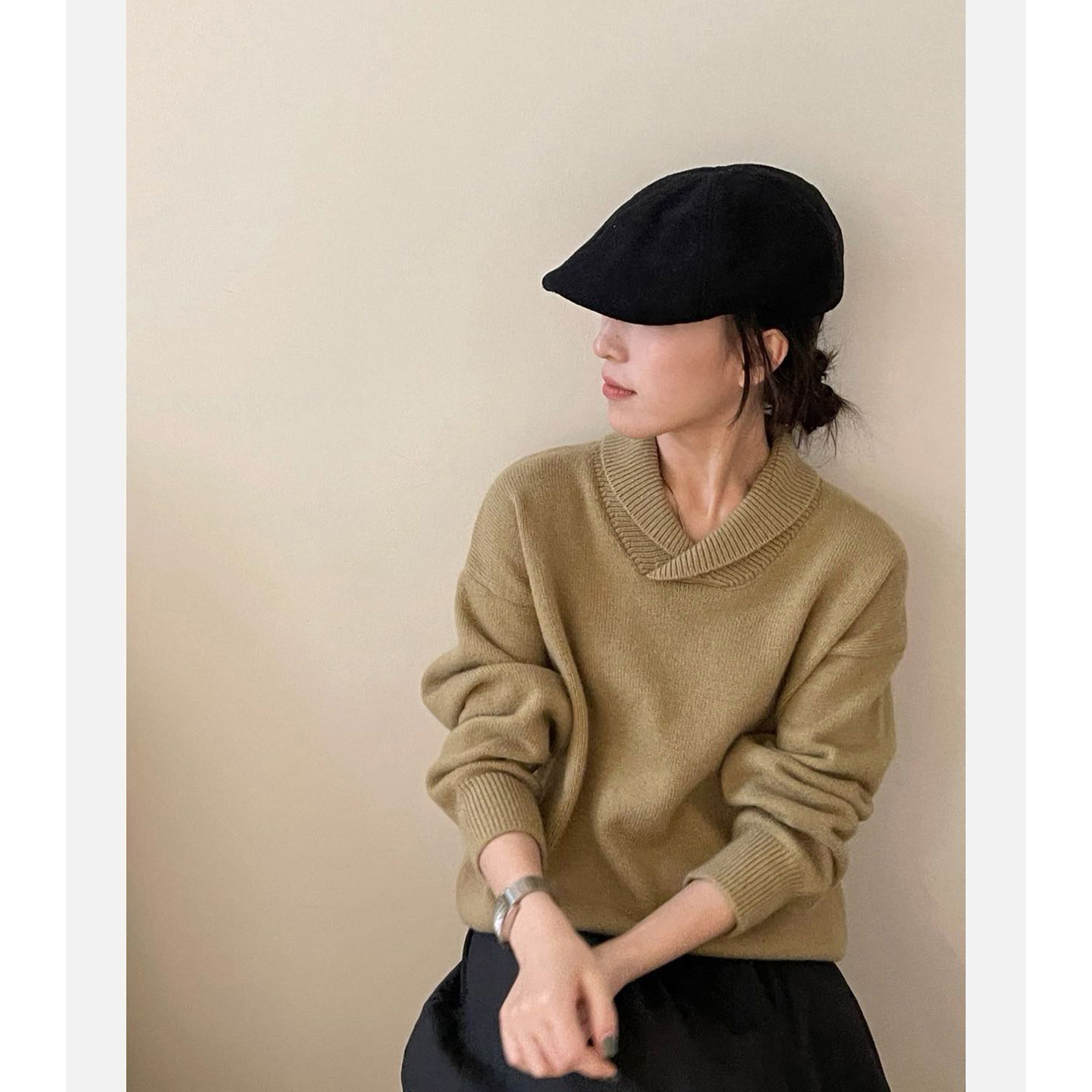 上衣 内搭女秋冬宽松气质毛衣打底衫 2025新款 翻领高级设计感针织衫