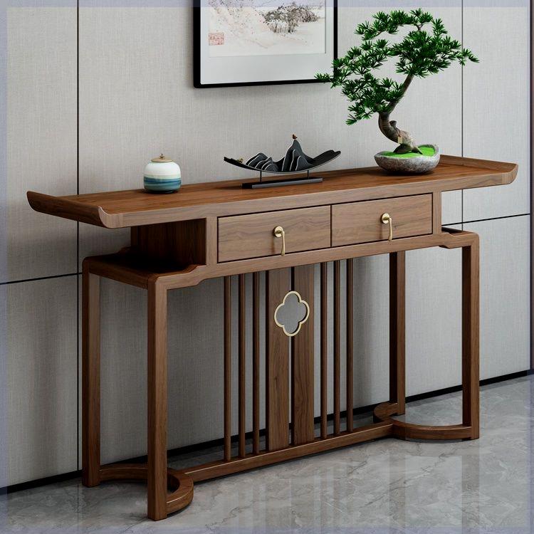 新中式 玄关桌玄关柜入户实木简约老榆木玄关台隔断禅意条桌几条案