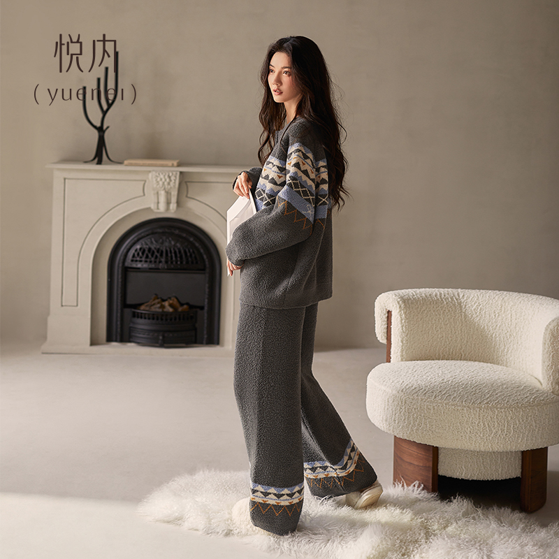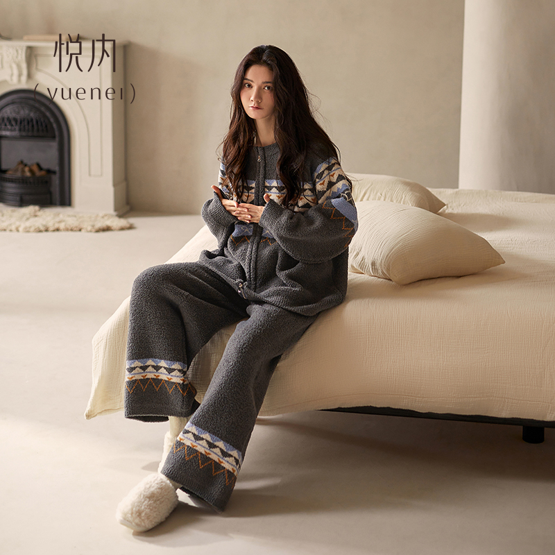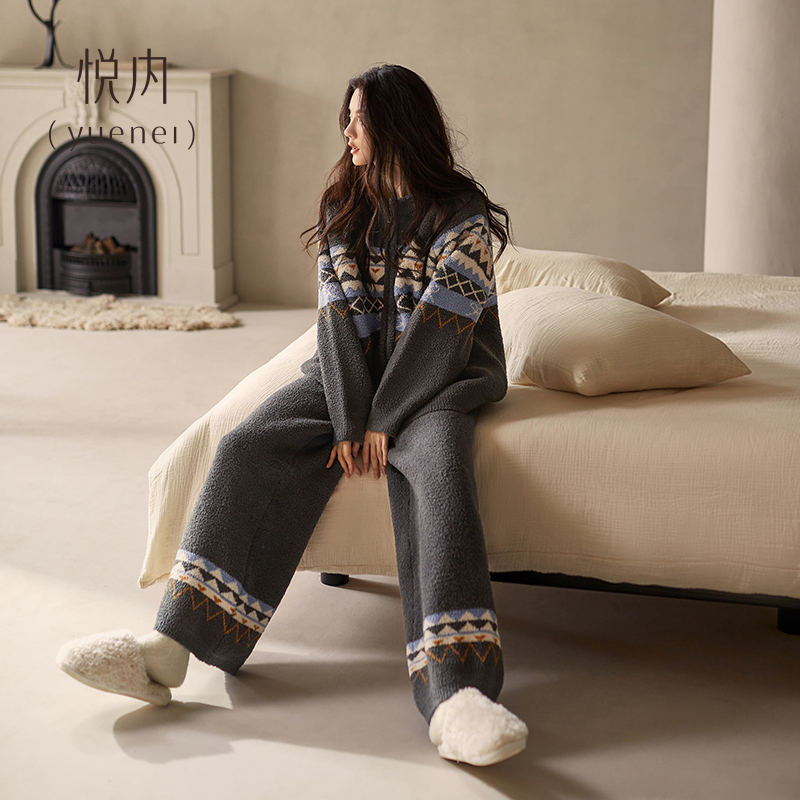 家居服冬季 芬腾女士睡衣秋冬法兰绒加厚套装 加绒珊瑚绒保暖加大码