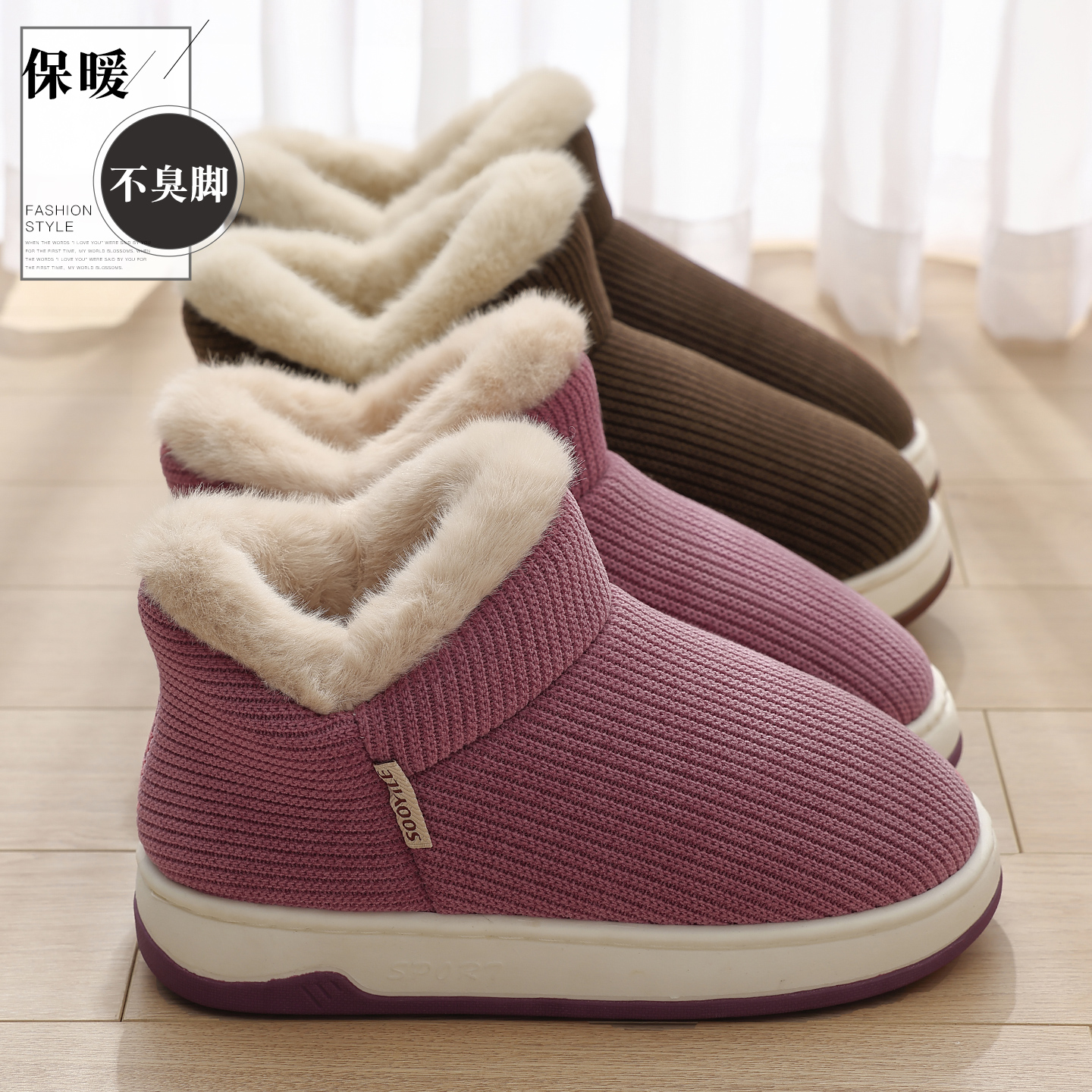 毛毛加绒厚底棉鞋 包跟室内家居2025新款 女 女士冬季 老人防滑棉拖鞋