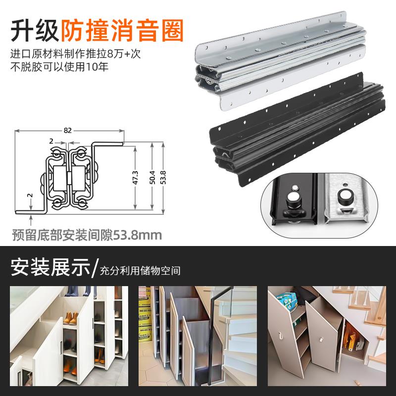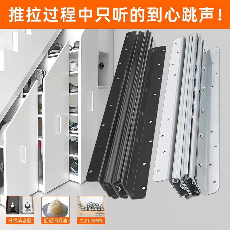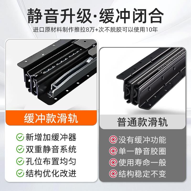 抽屉滑道轨道超厚不锈钢静音三节轨导轨衣柜滑轨阻尼缓冲反弹轨道