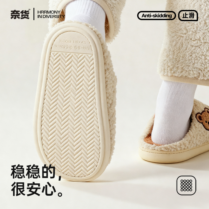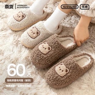 包头拖家居室内防滑加绒小熊毛毛拖 2025新款 奈货棉拖鞋 女士冬季