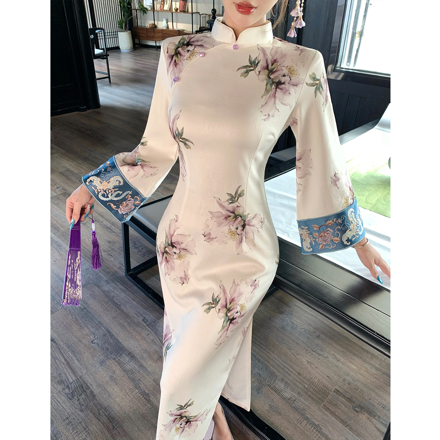 菲梦伊原创钉珠提花连衣裙女秋季 国风高端气质贵妇旗袍裙子 新中式