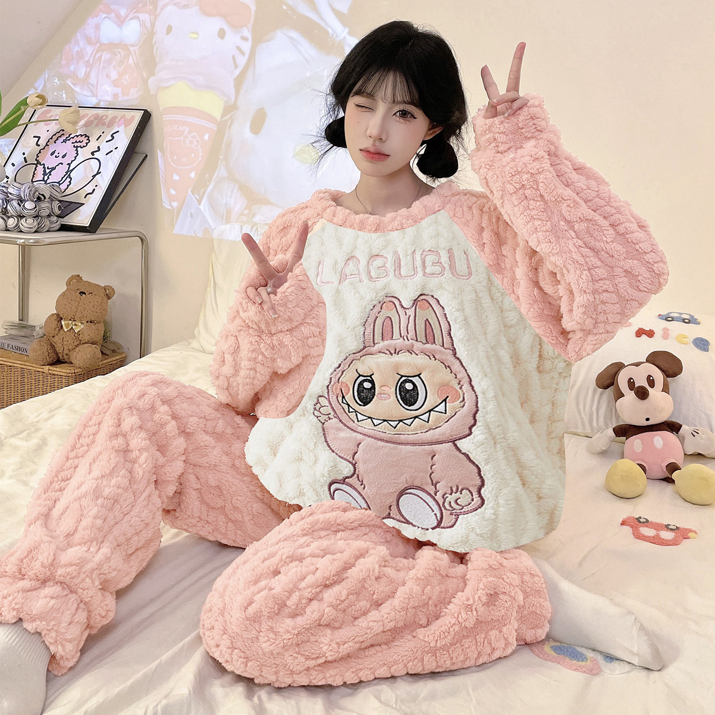 加绒加厚卡皮巴拉法兰绒家居服冬天 2025新款 珊瑚绒睡衣女款 秋冬季