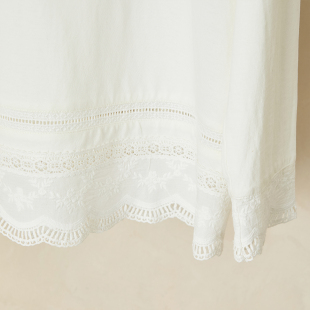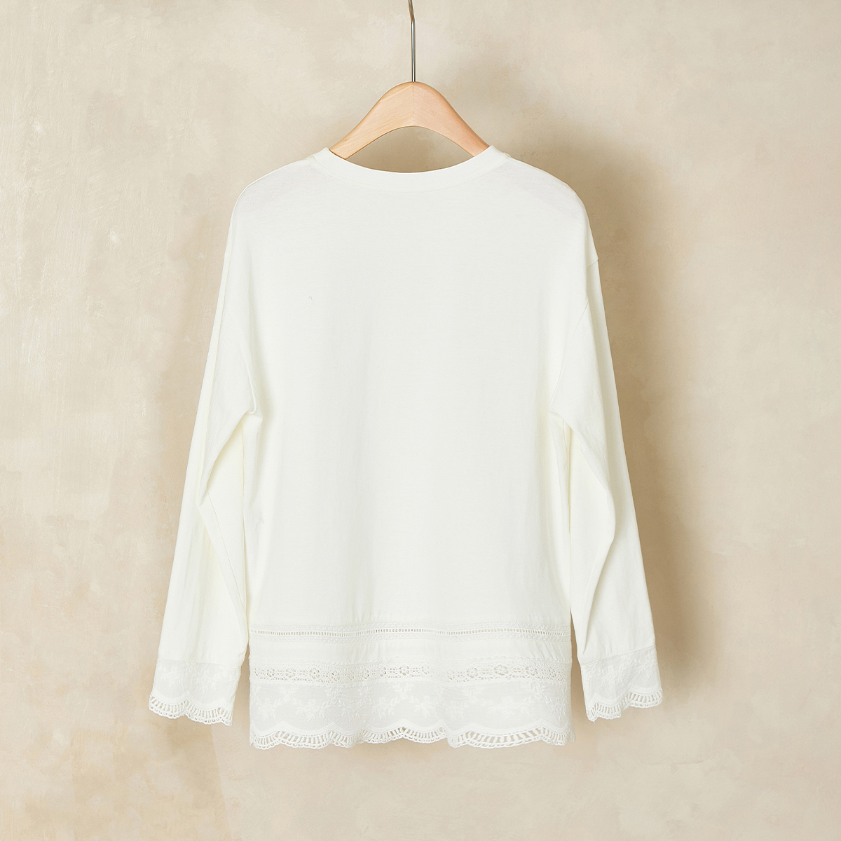 上衣 绣花边拼接长袖 秸熙2025秋冬新款 纯色百搭圆领套头T恤打底衫