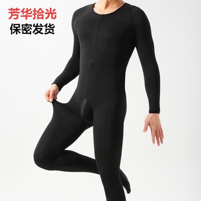 丝袜 保暖开口免脱带jj性感连裤 加大码 加绒加厚拉链连体全身衣男士