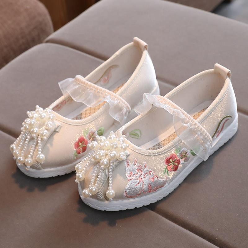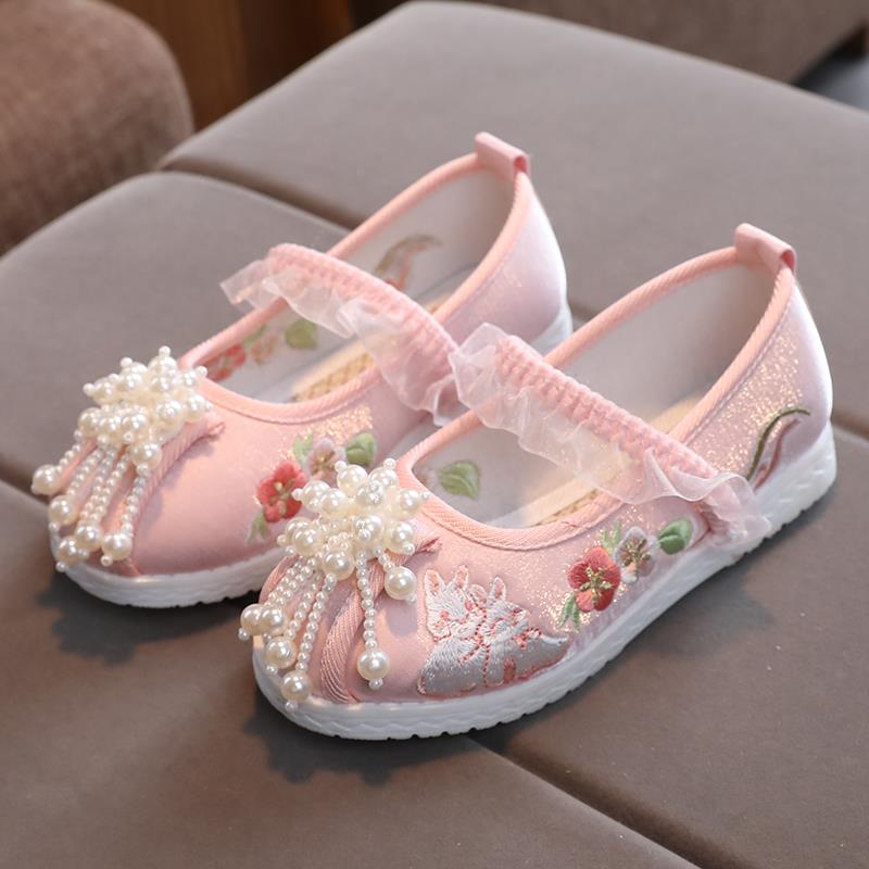 子女儿童演出公主鞋 古风汉服鞋 国风布鞋 马面裙古装 唐制平底绣花鞋