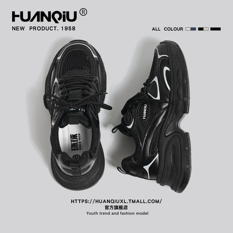 秋季 2025新款 时尚 百搭休闲女鞋 环球厚底黑色老爹鞋 超轻运动鞋 女款