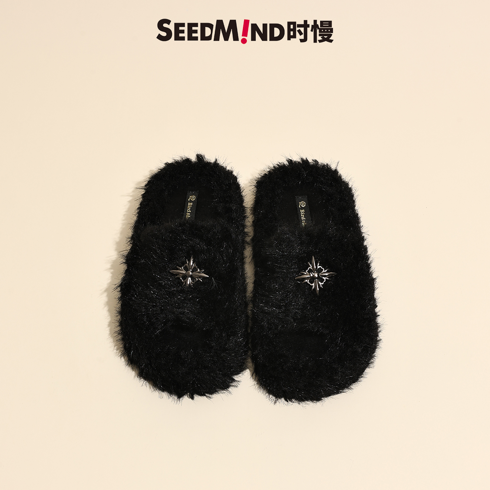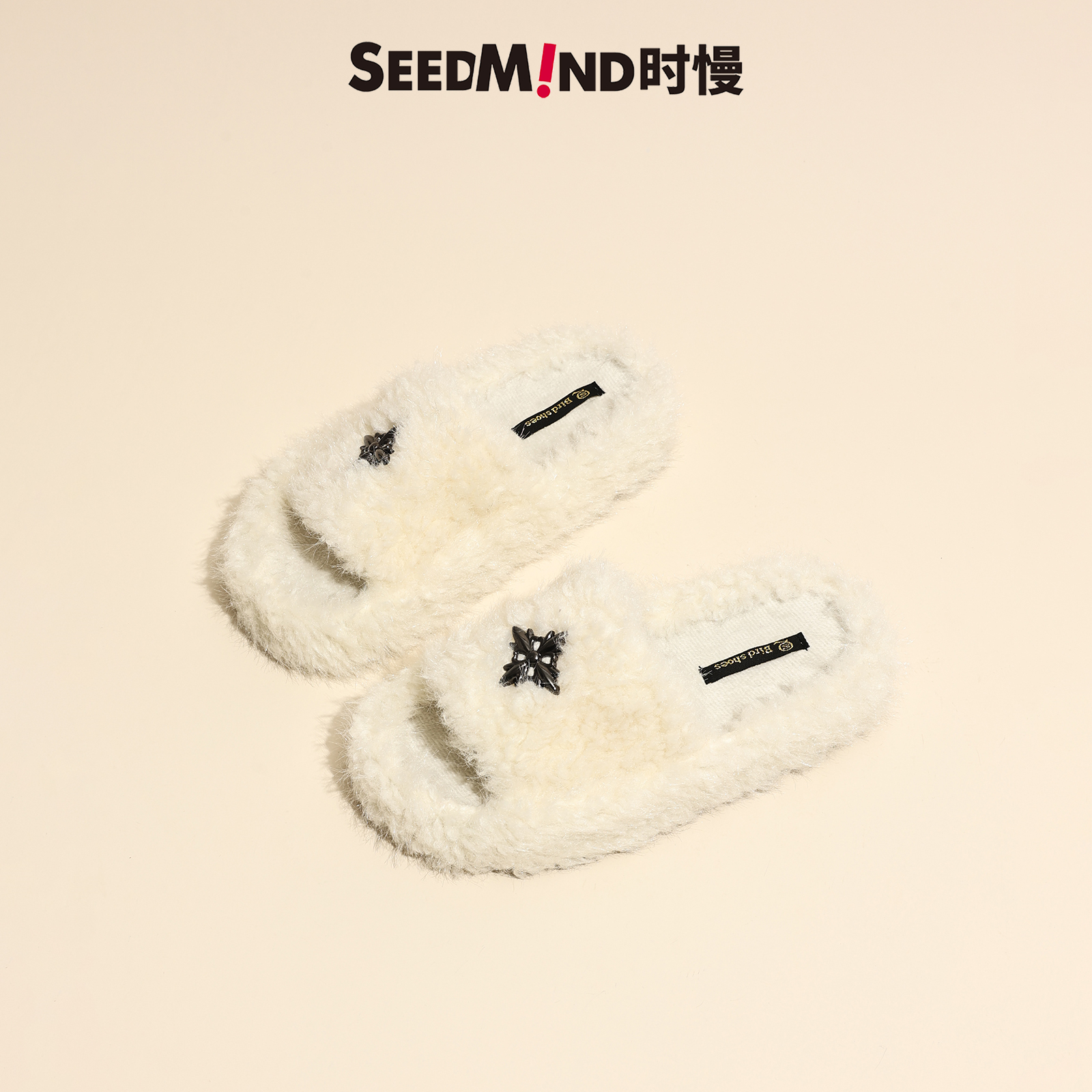 Seedmind泰迪厚底显高毛毛拖 高级感高跟新娘秀禾婚纱两穿结婚鞋